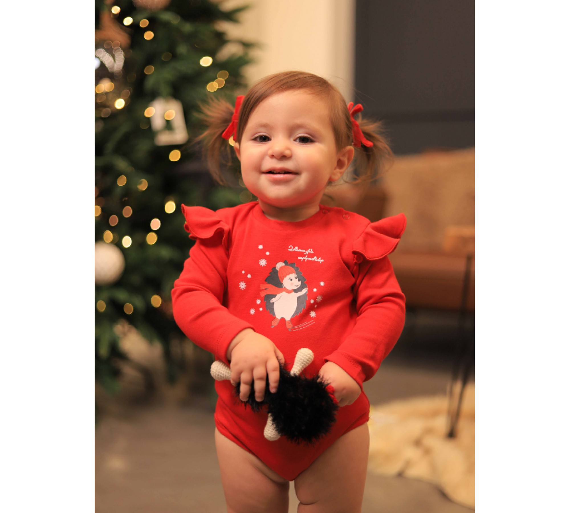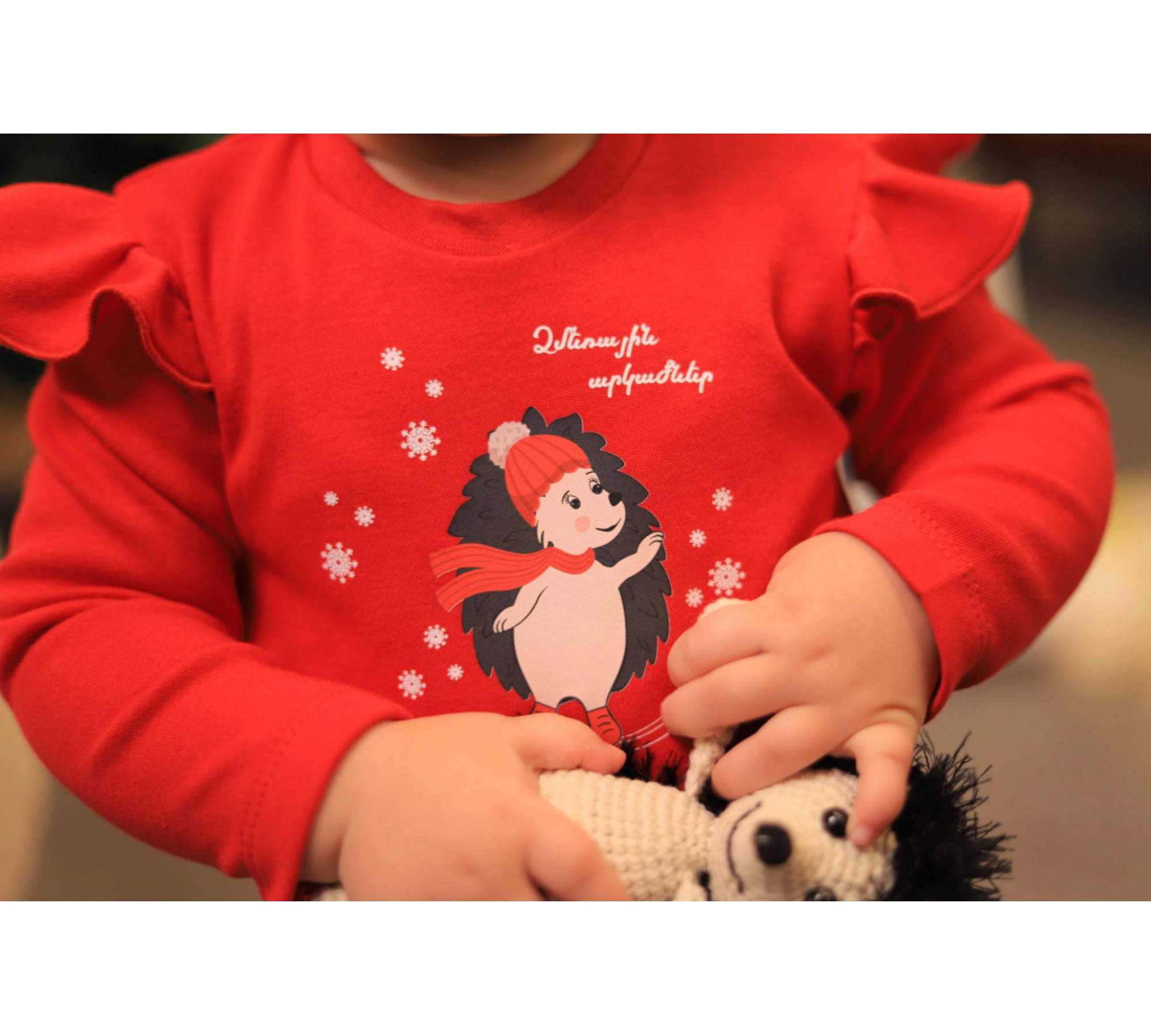Նորաձև և որակյալ կարմիր երկարաթև բոդի ոզնի Լալալյի ձմեռային ոճային պրինտով և «Ձմեռային արկածներ» գրվածքով փոքրիկ աղջիկների համար