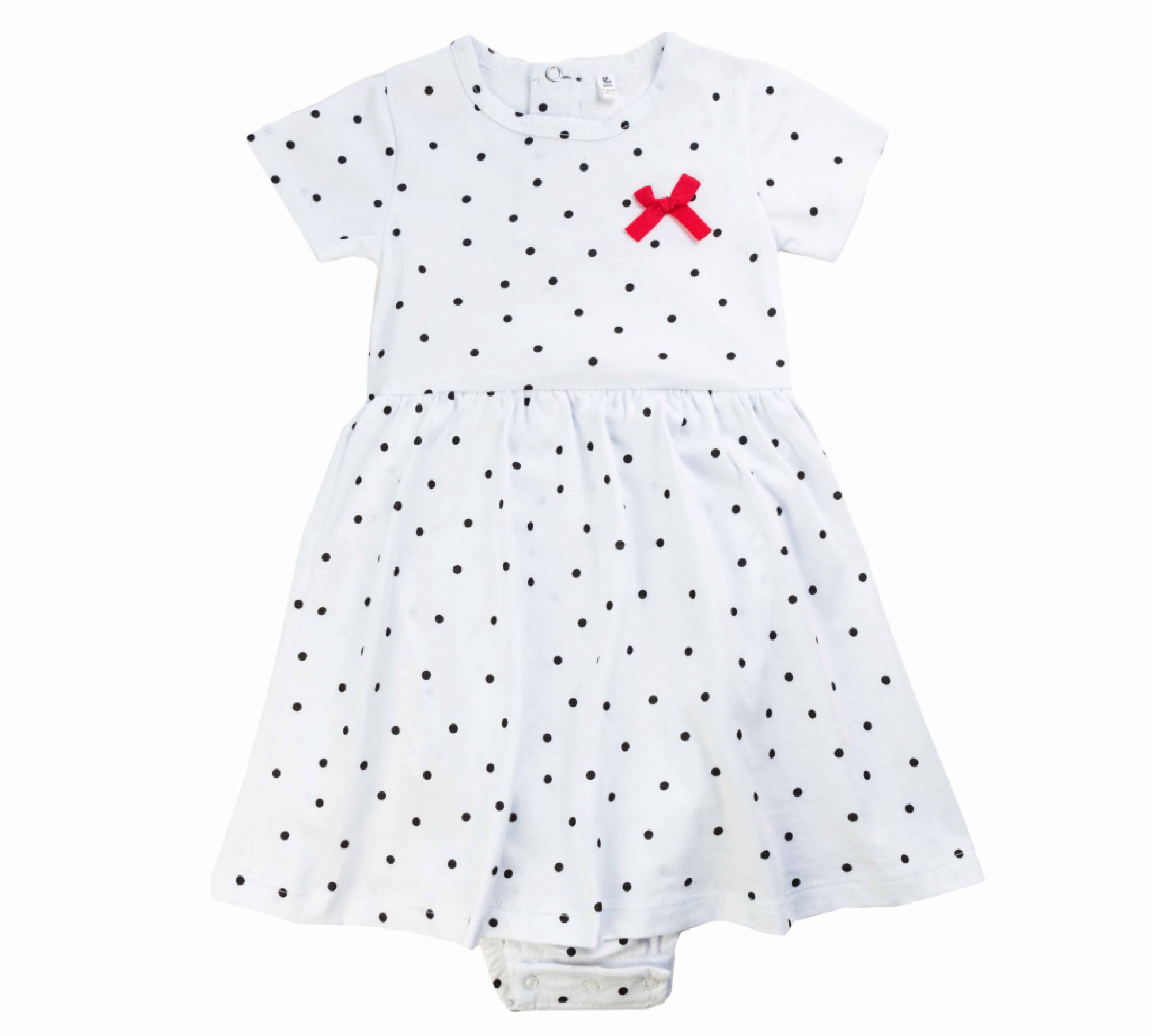 Այս ոճային սև պուտերով սպիտակ բամբակյա զգեստը՝ կցված բոդիով, կատարյալ է տաք եղանակի համար: