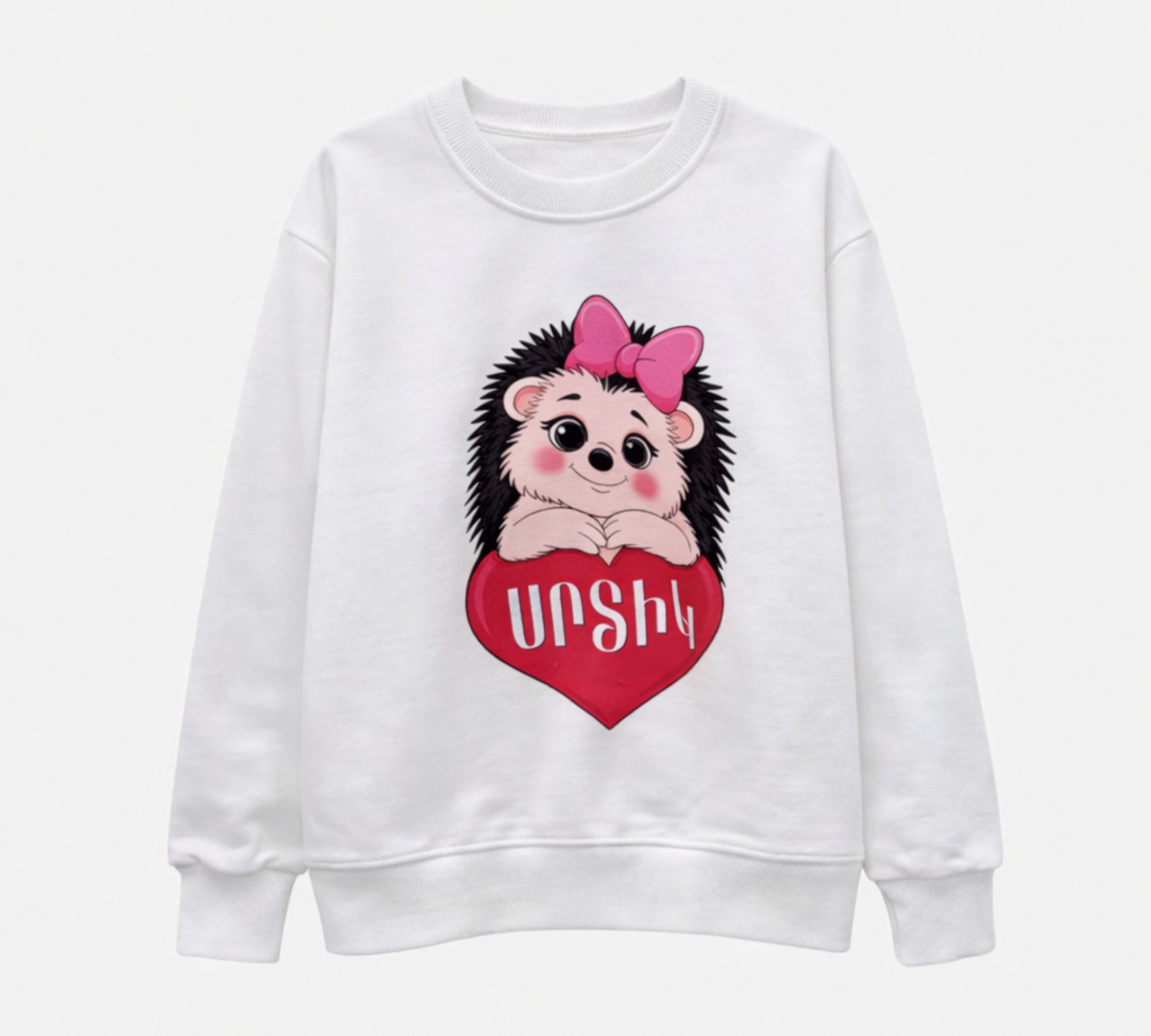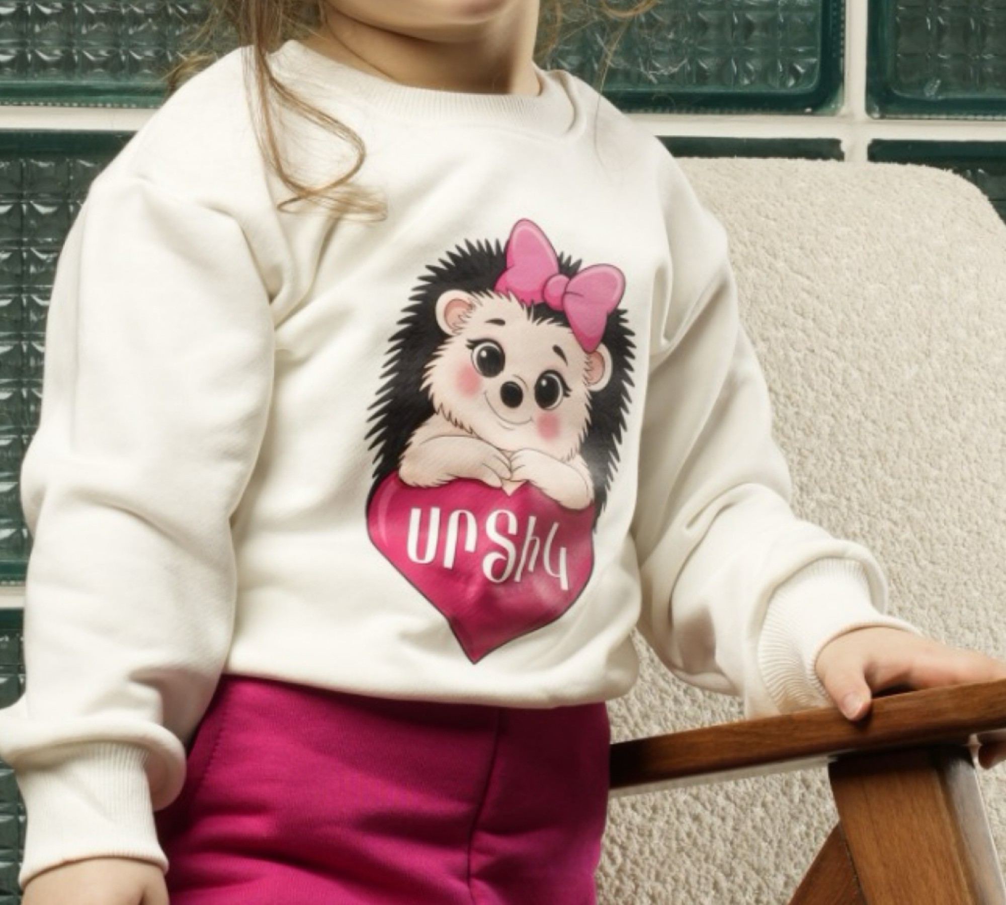Նորաոճ, որակյալ և հարմարավետ կաթնագույն սվիթշոթ սրտիկ պրինտով և Լալա ոզնիով թիթիզ փոքրիկ աղջիկների համար