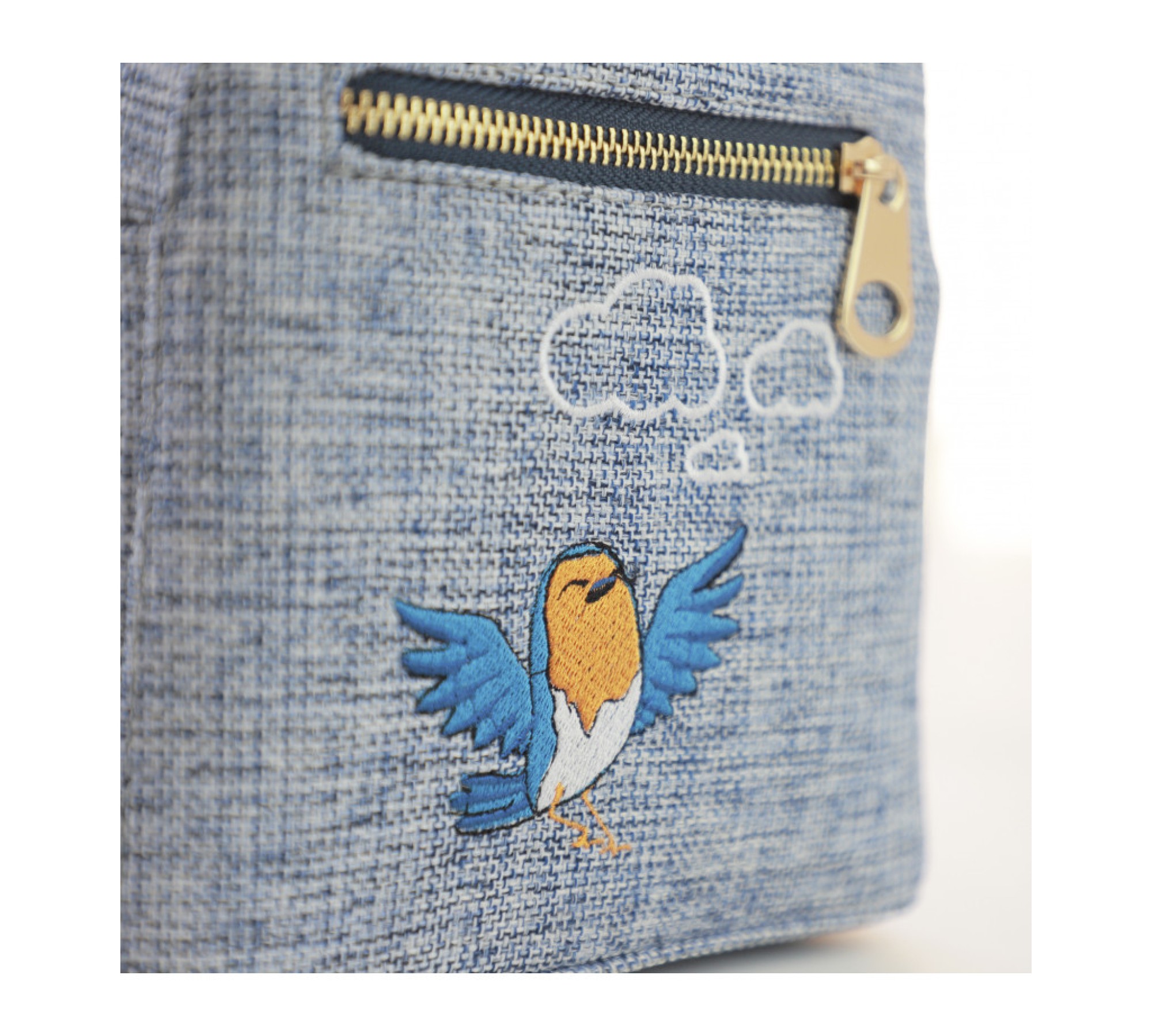 Stylish, high-quality, comfortable and roomy light blue denim backpack `Arshaluysik` for girls