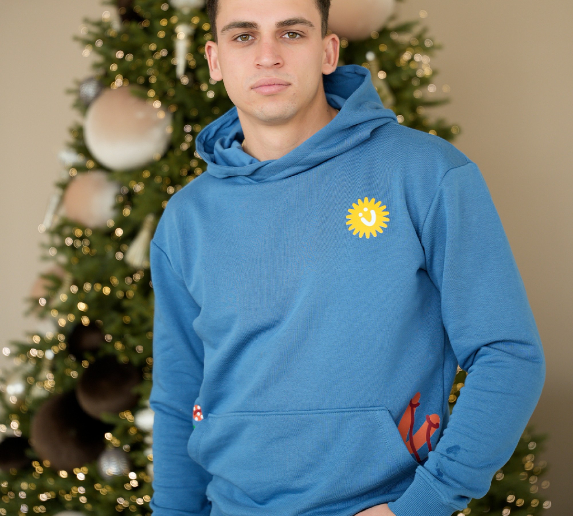 The adventurous hoodie from the #kidsrich collection instantly lifts the mood with its bright color and cheerful print. It gives warmth, like the main message of the campaign. It will become a beautiful part of the family set and is a great solution for photos.
