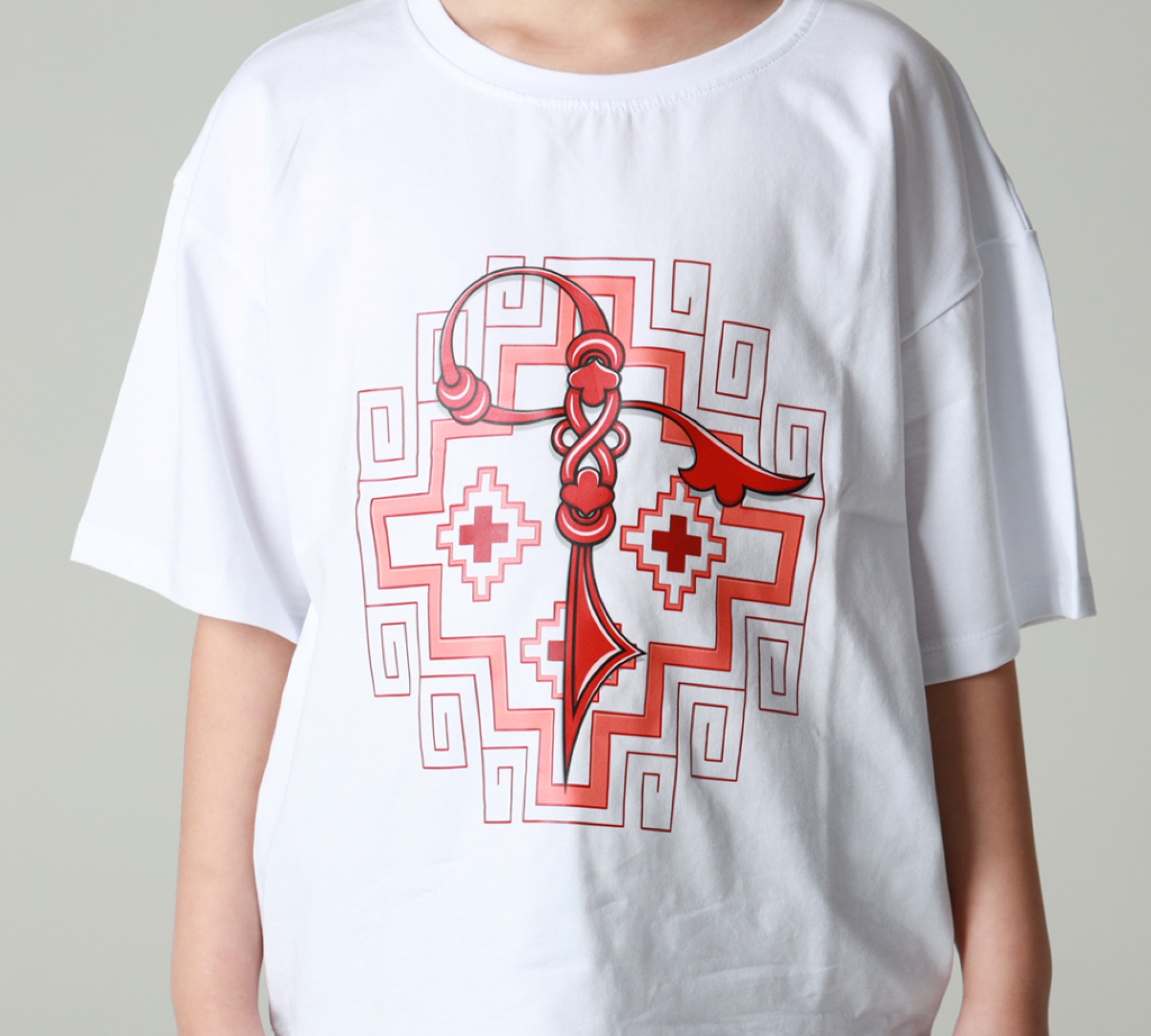 This white short-sleeved T-shirt with an interesting “G” design is specially designed to emphasize the stylish Armenian look of your children. It goes well with sporty and classic pants, shorts and jeans.