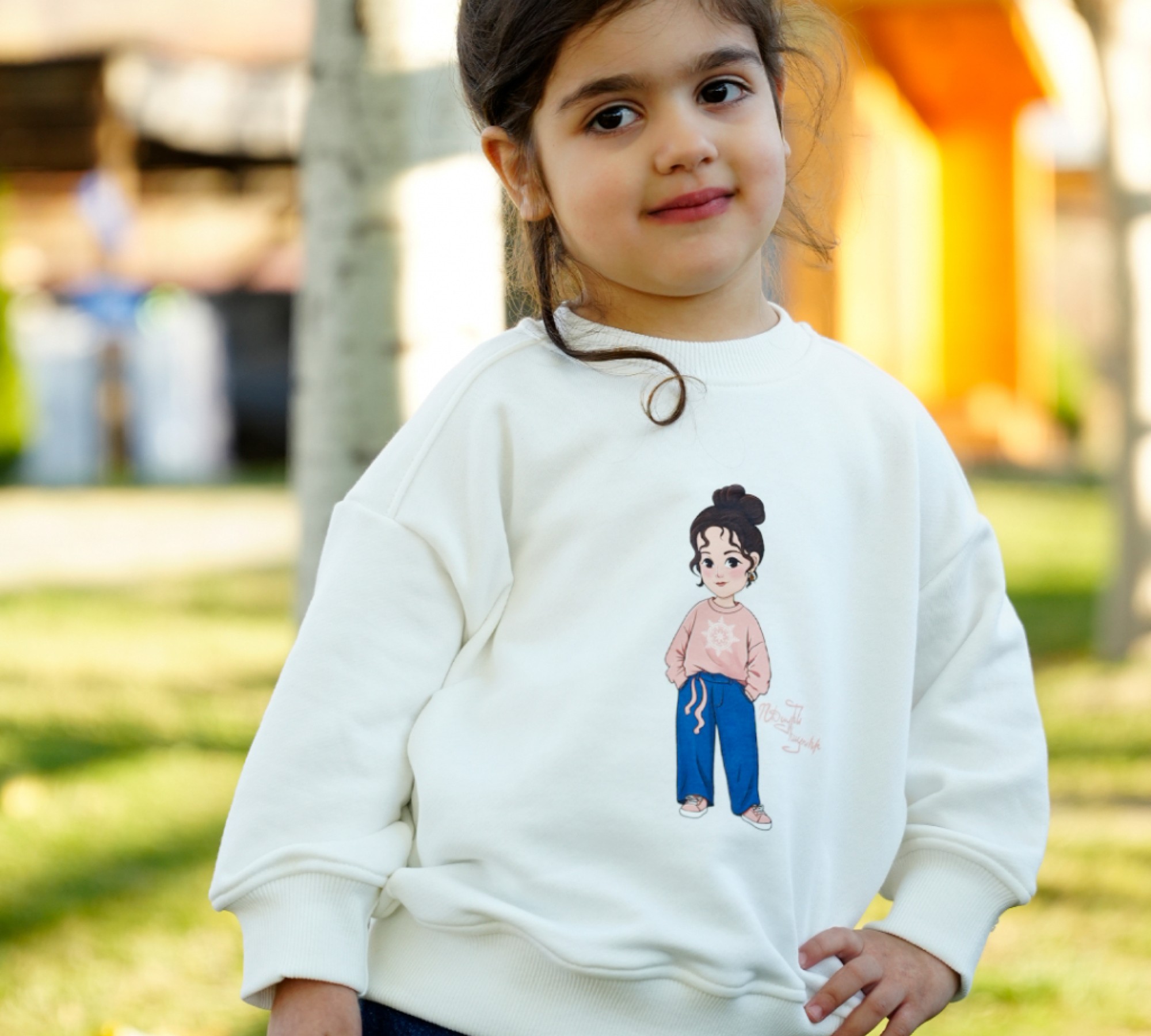 Creamy cozy sweater In the image of a stylish Armenian girl. Seasonal, warm and cozy sweater is an ideal option to complete your child's look. Combines with jeans, skirts, as well as sweatpants