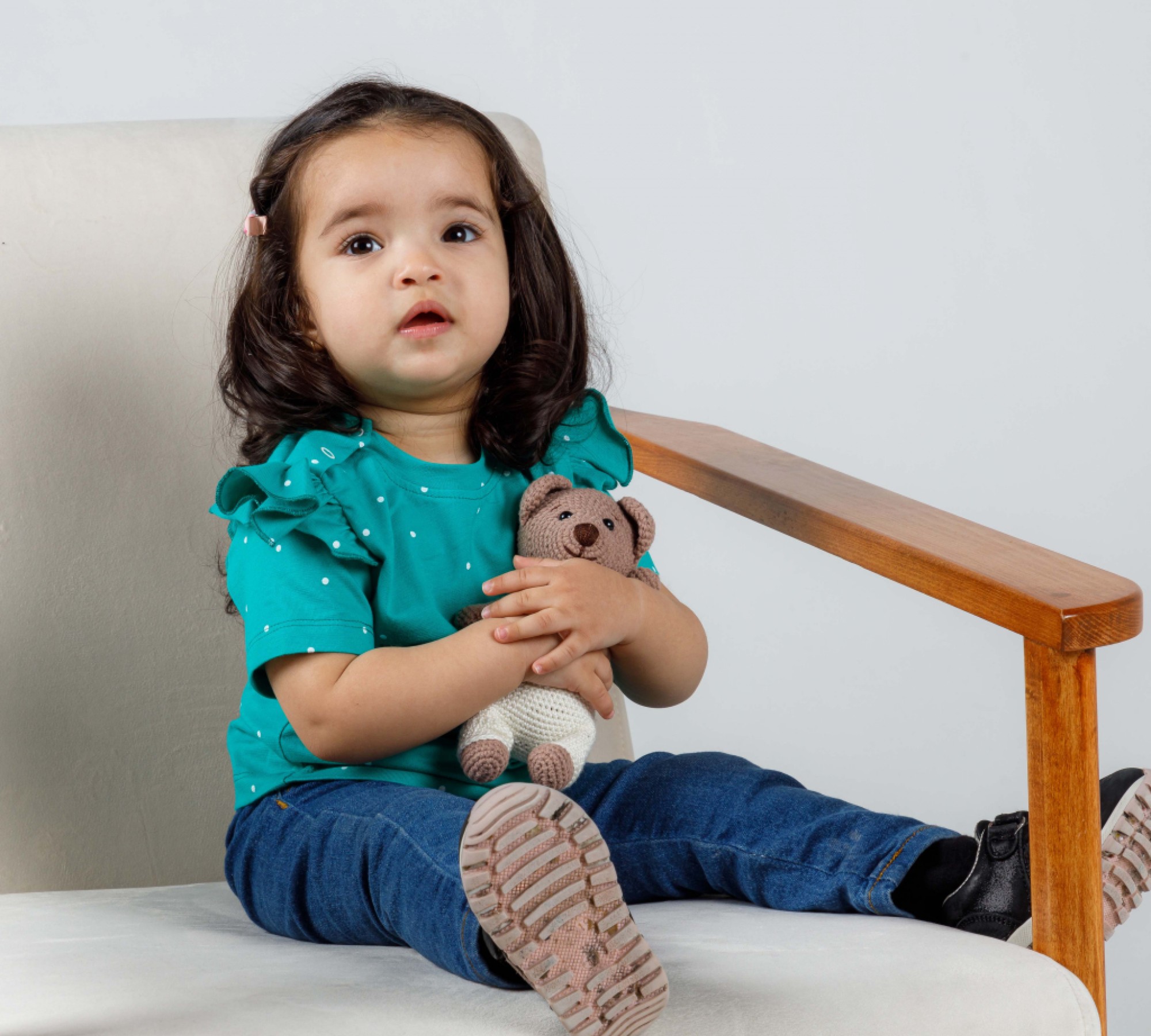 This beautiful short-sleeved green shirt with white polka dots will become one of the favorite clothes in your little one\'s wardrobe, which will be easily combined with skirts, leggins or trousers.