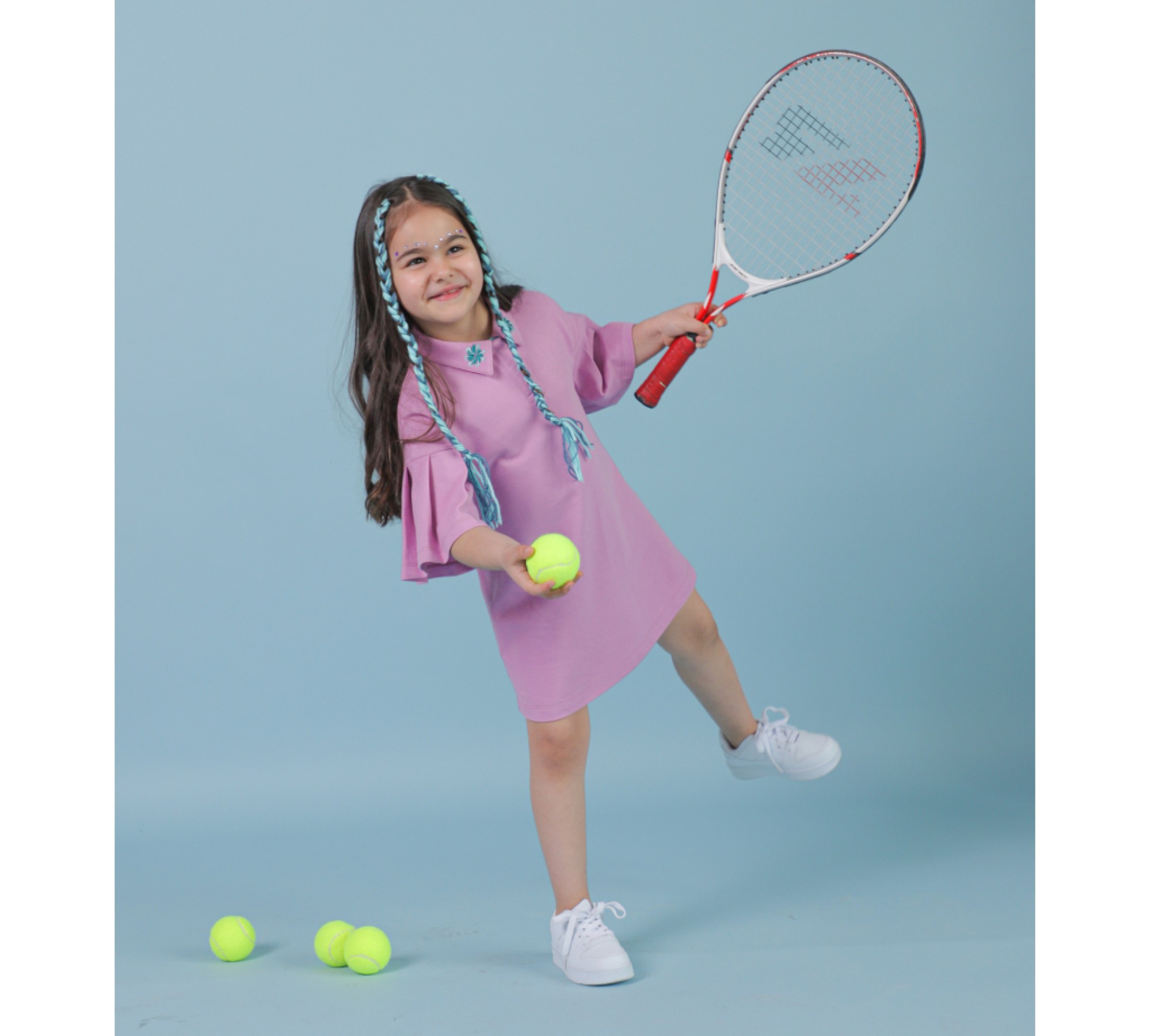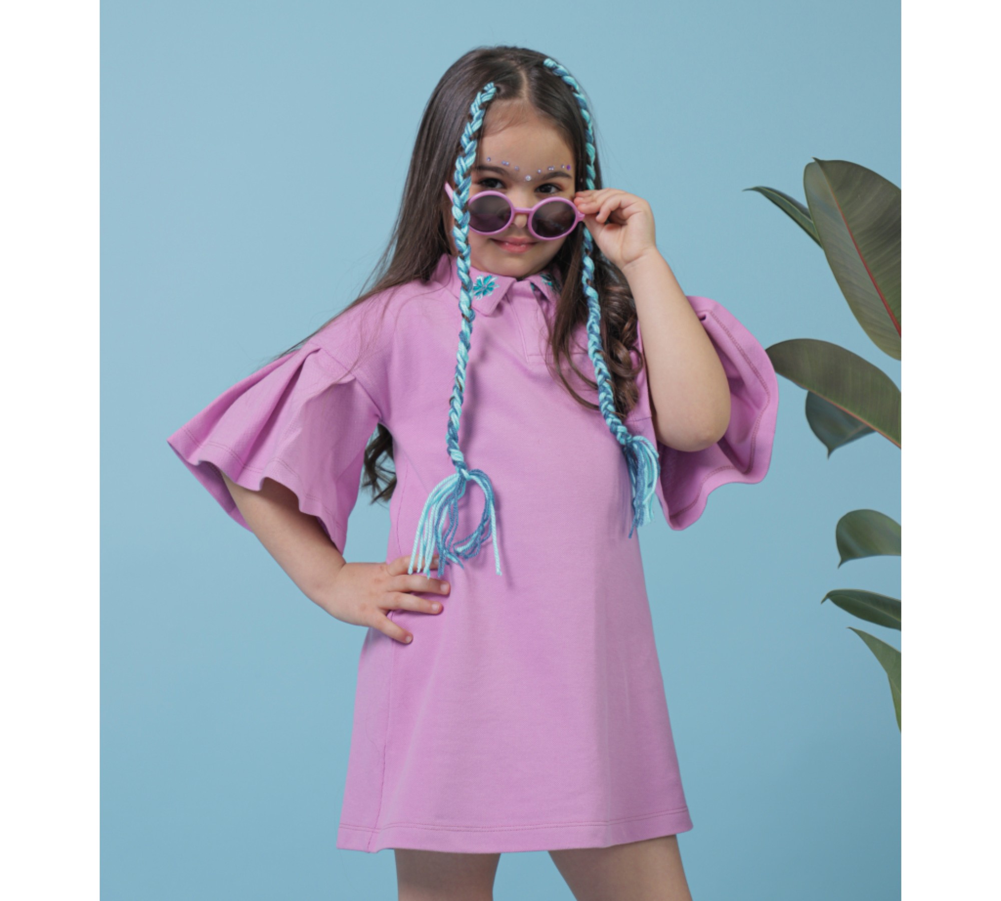 Stylish, high quality and comfortable purple polo dress with short sleeves with embroidered cornflowerss