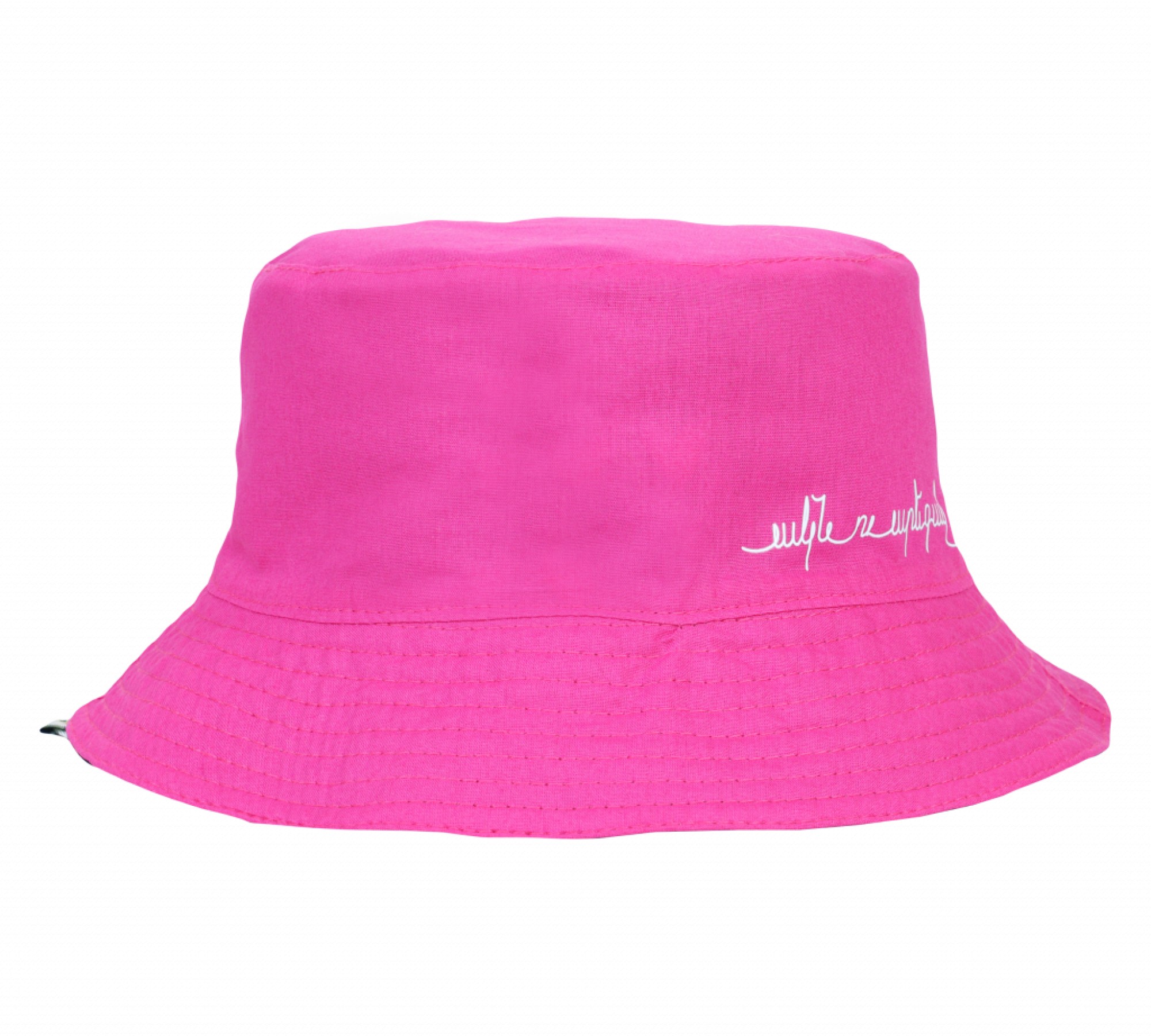 Stylish summer reversible panama hat with heart embroidery on the blue side and pink side for girls