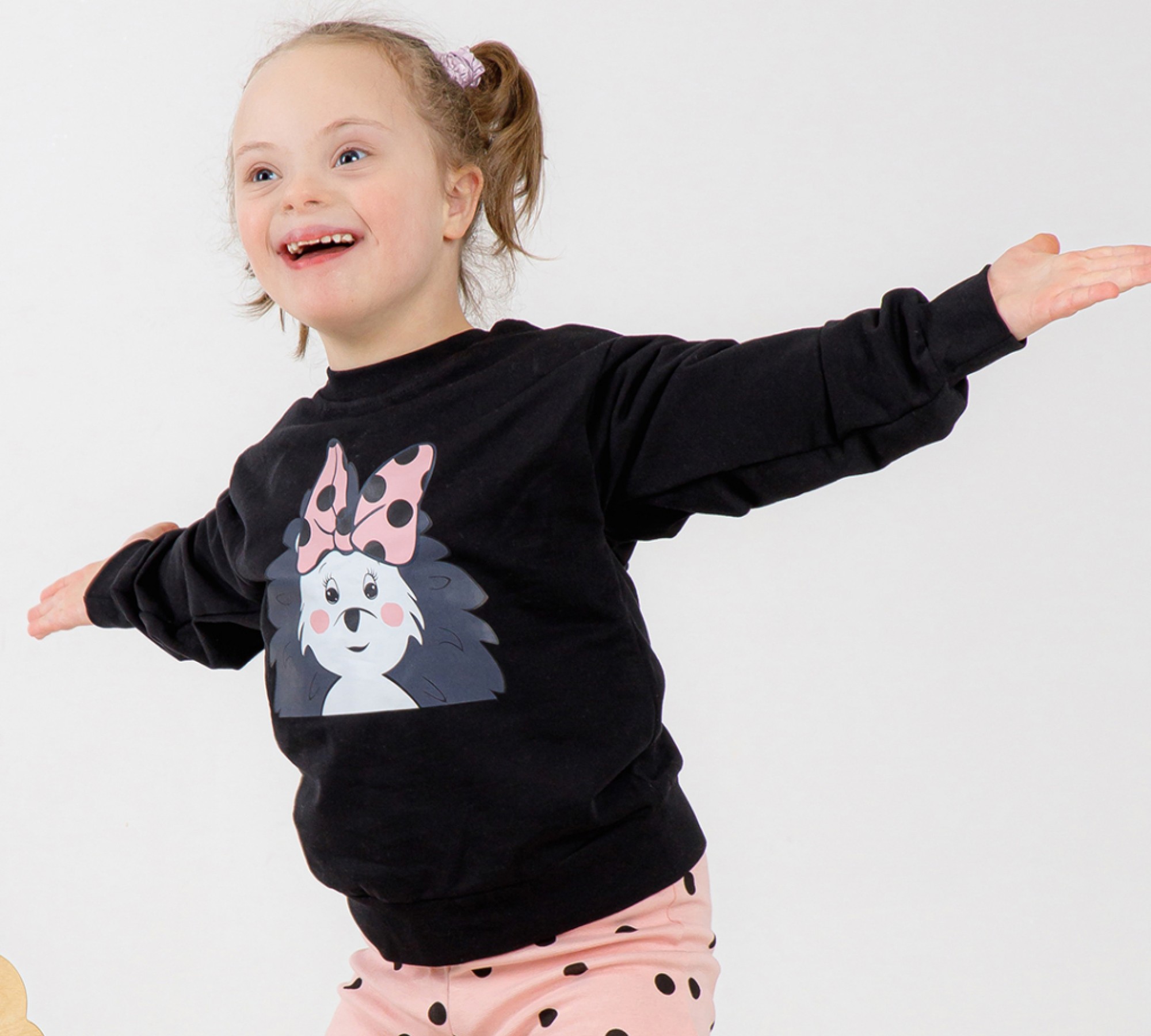 This sweater is the perfect choice for your little ones. It pairs easily with both classic and sporty pants. It looks especially great with Lalunz’s pink holiday leggings with black polka dots.