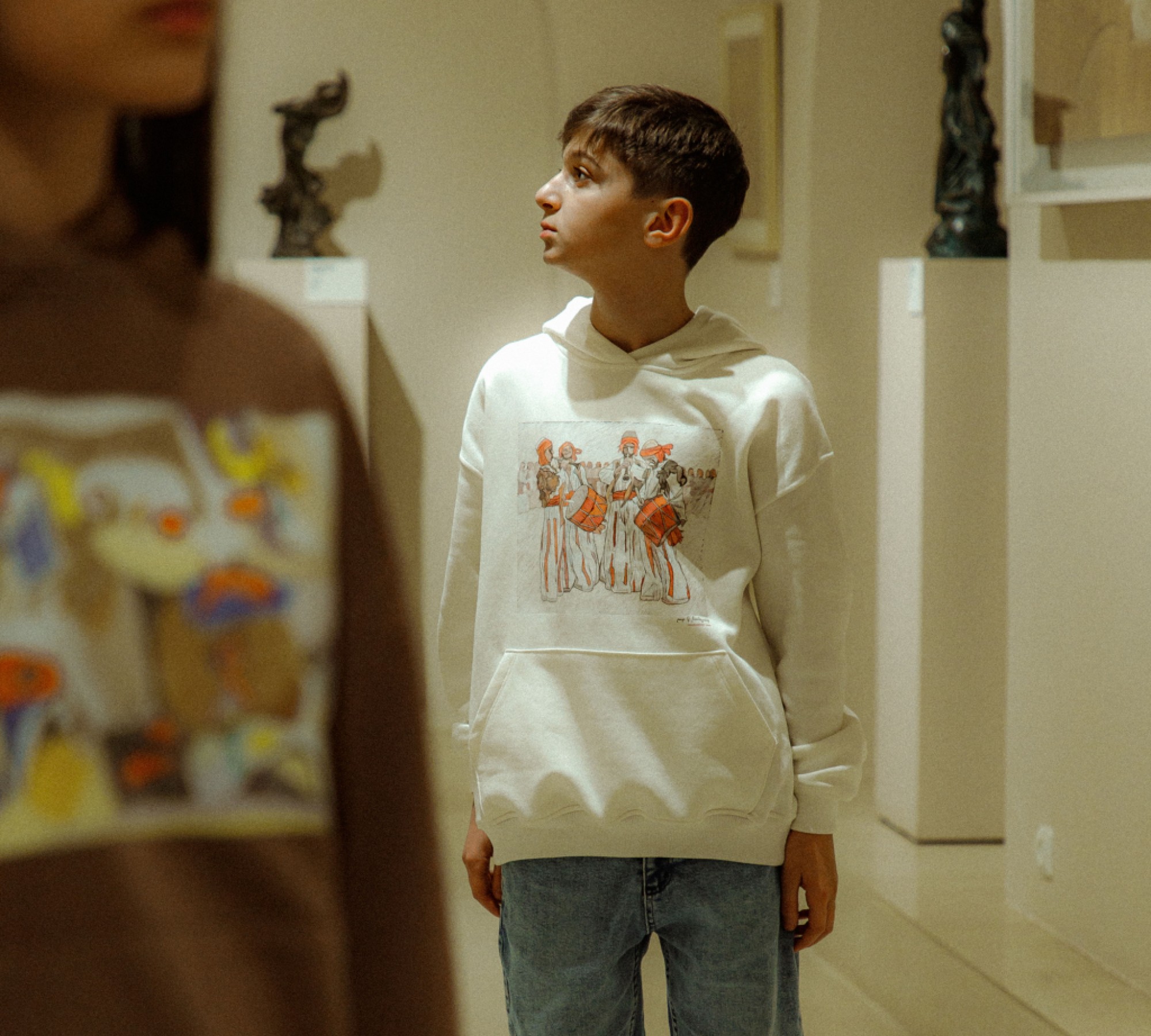 Stylish, high-quality and unique white hoodie by G. Khanjyan's famous `Dance of the