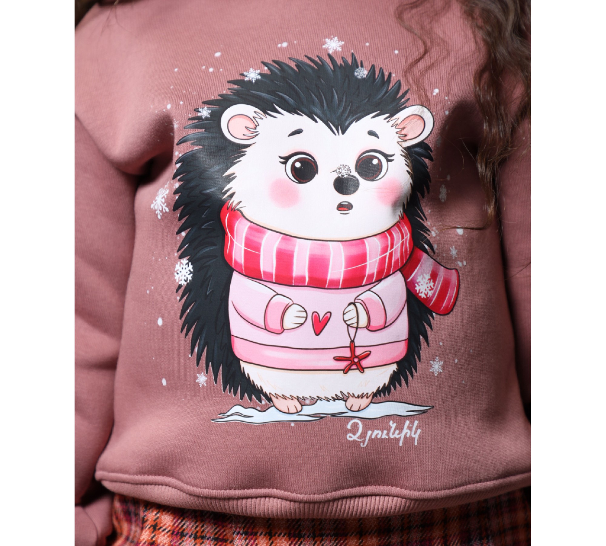 A warm and cozy pink sweater with a cheerful hedgehog print. The perfect choice for winter days, combining comfort and a stylish look.