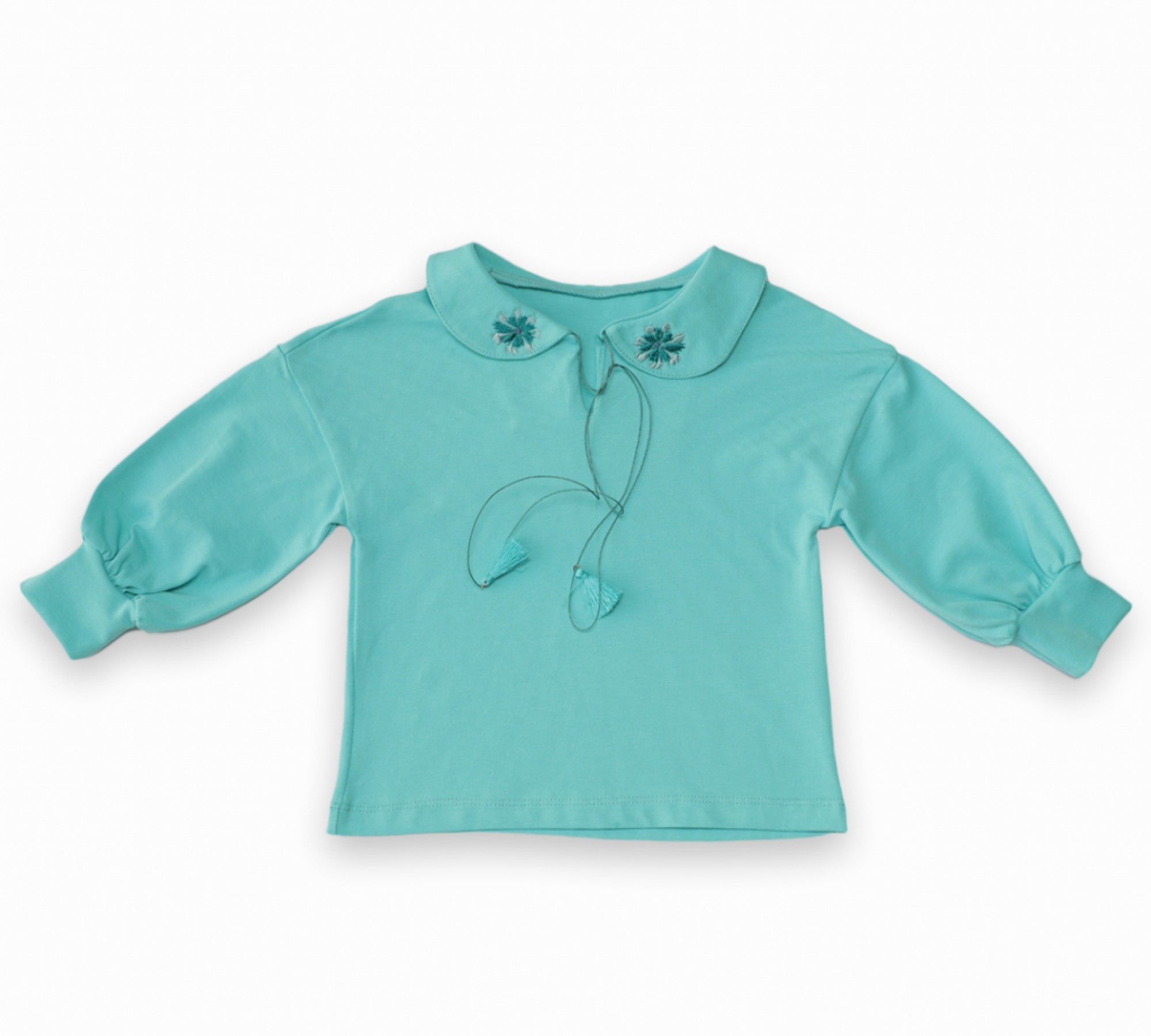 Փիրուզագույն բլուզ կապիչներով մանկական