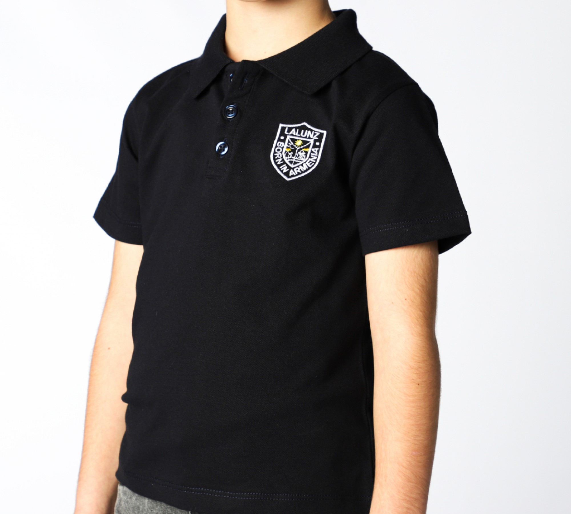 Stylish, high-quality and comfortable short-sleeved dark blue polo with Lalunz logo for boys