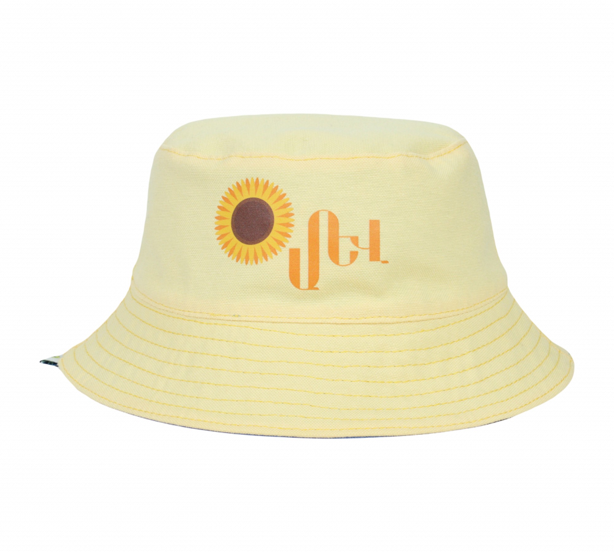 Stylish summer reversible panama. with sun embroidery on blue side and sun print on yellow side