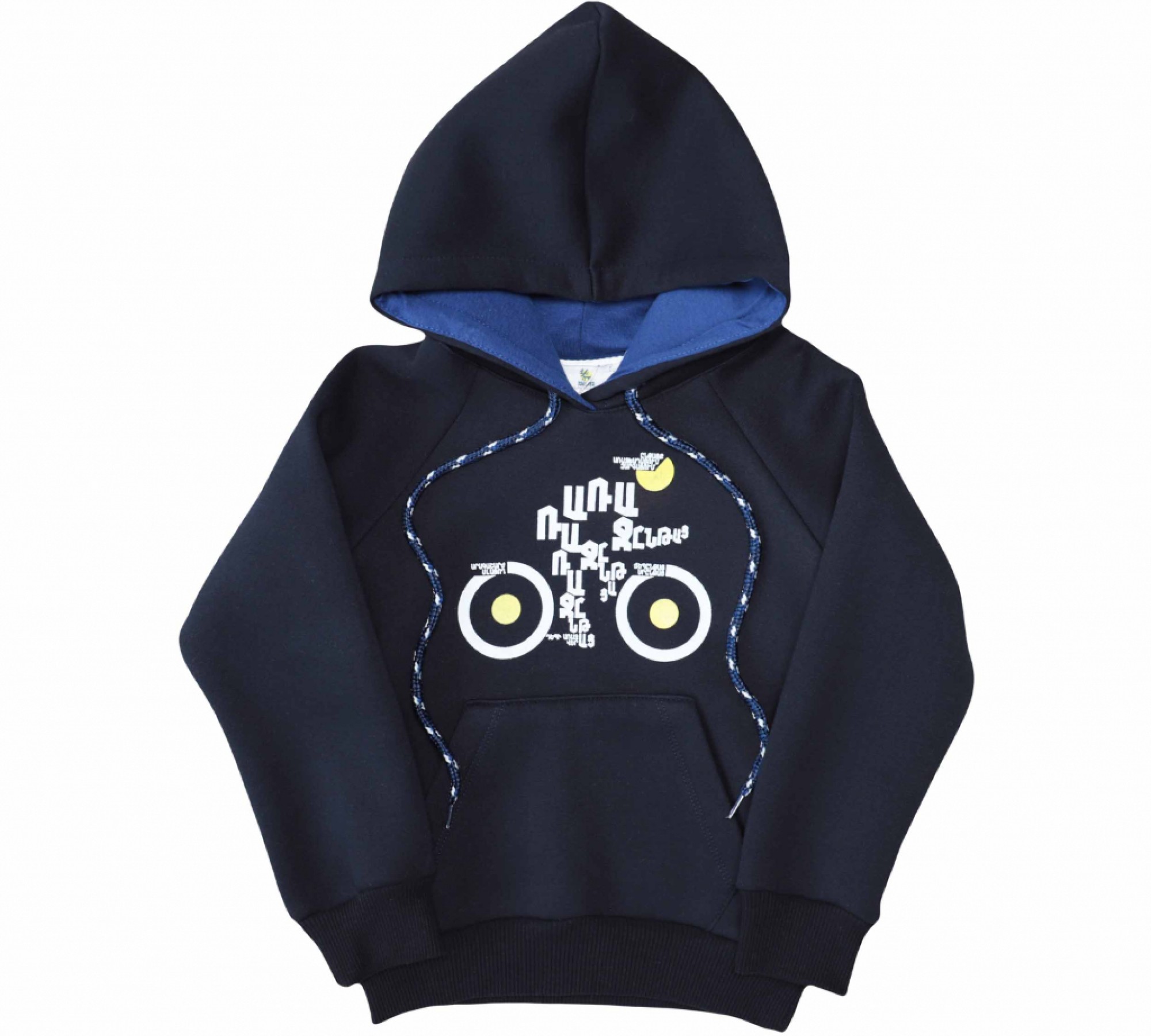 Удобная, качественная и стильная байковая толстовка темно-синего цвета с надписью `Прогресс` для стильных мальчиков