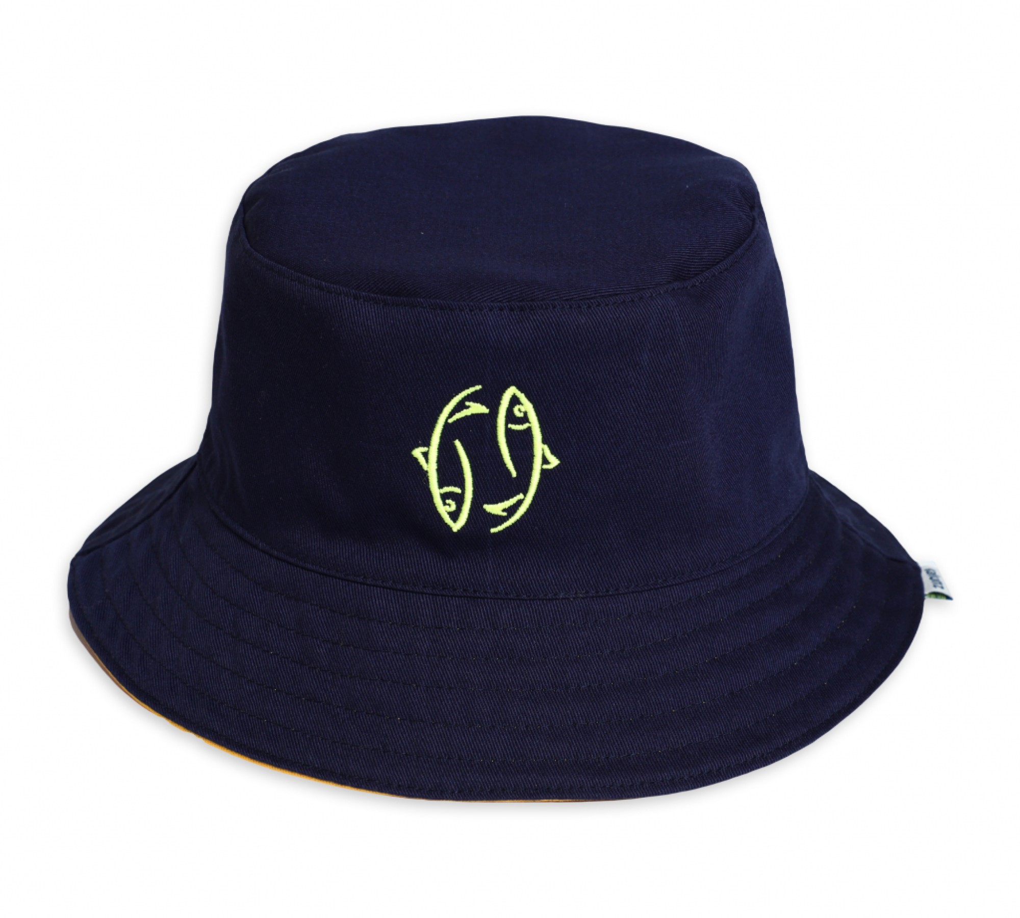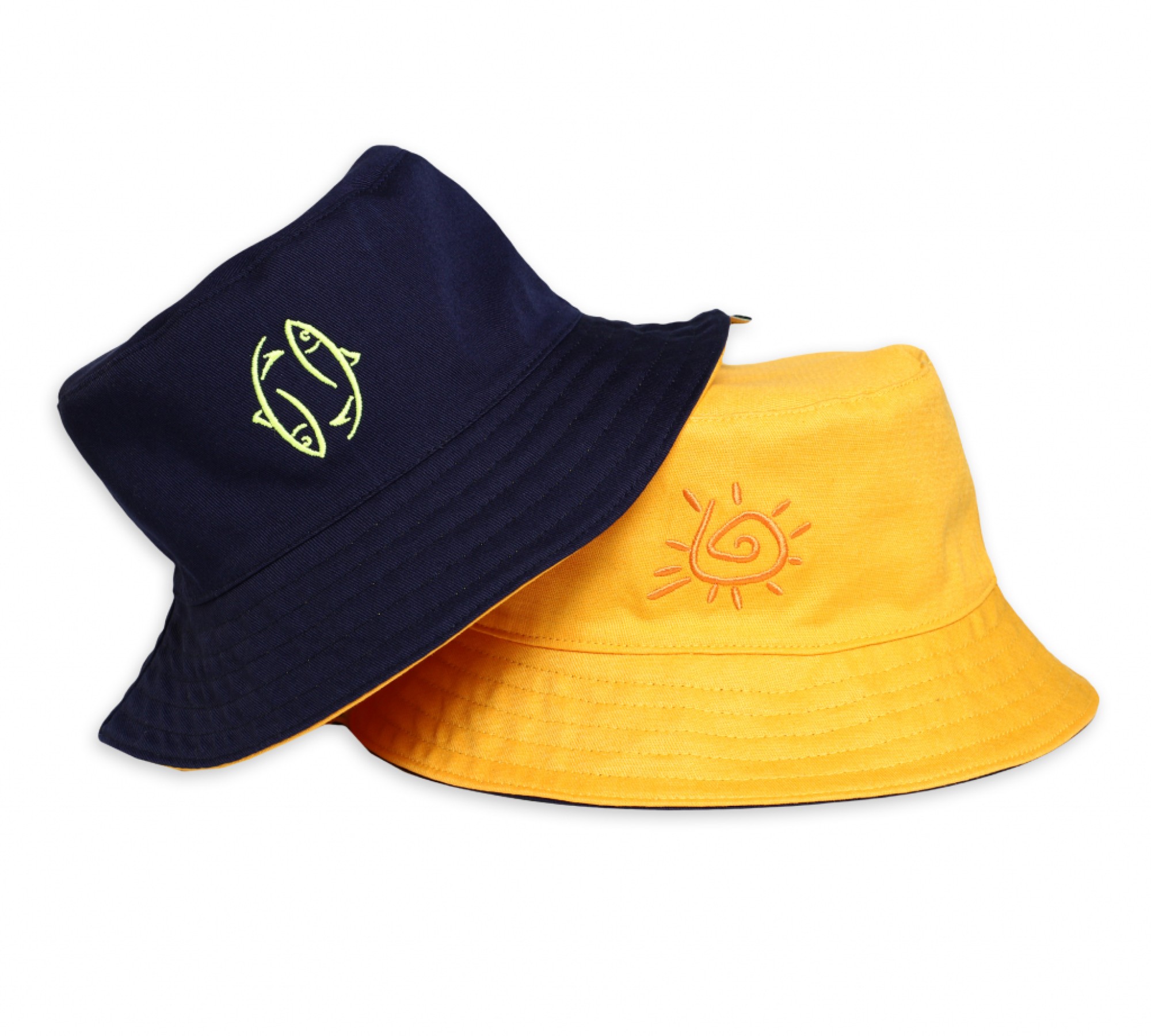 Նորաոճ ամառային երկկողմանի պանամկա․դեղին կողմից արևի ասեղնագործությամբ, կապույտ կողմից ձկնիկների ասեղնագործությամբ