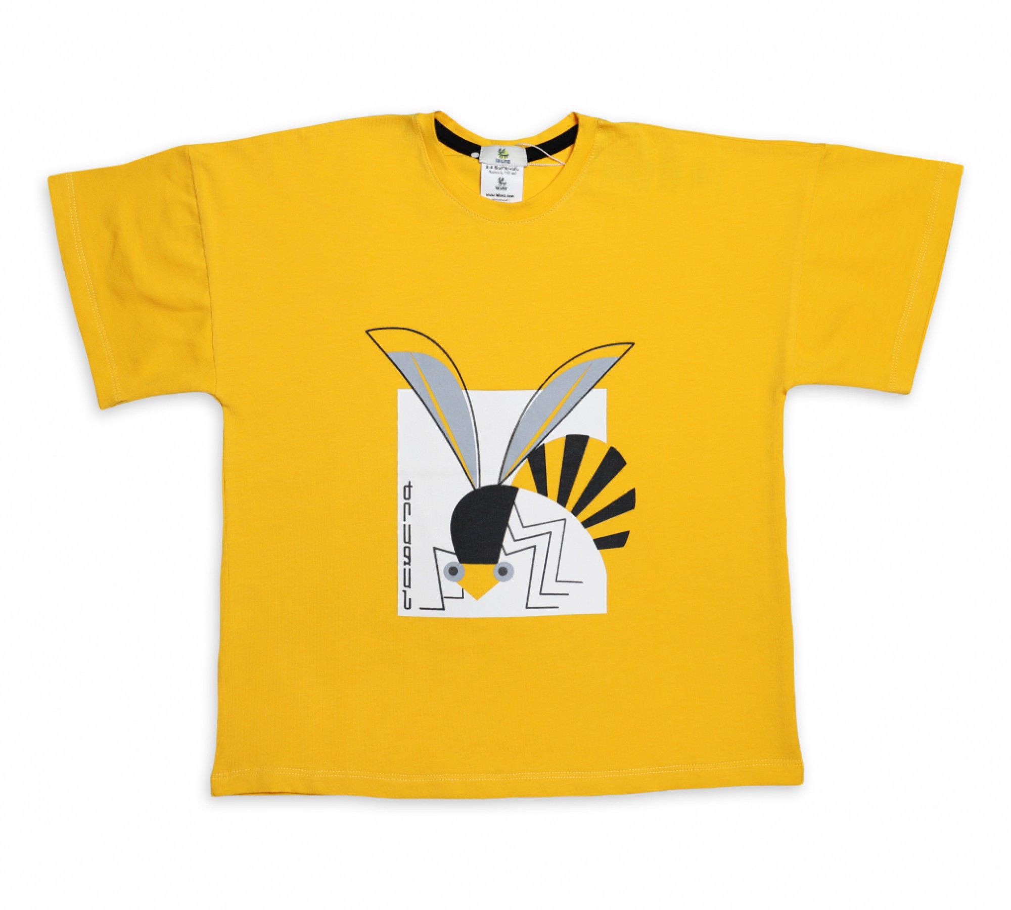 Стильная, качественная и удобная жёлтая футболка с короткими рукавами с принтом пчёлки и надписью `Трудолюбивый` для трудолюбивых детей