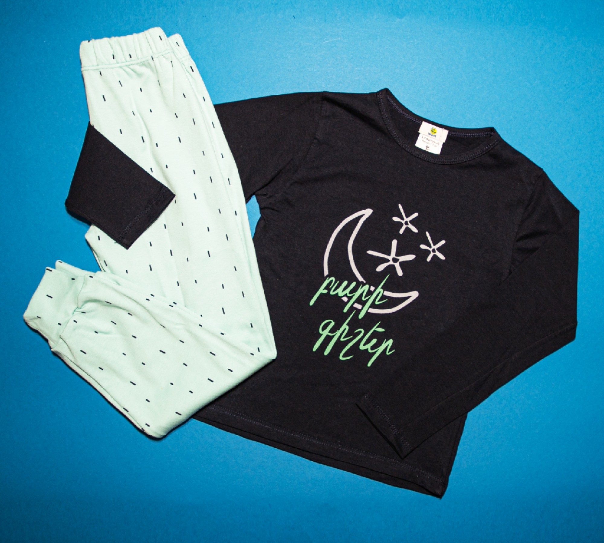 Пижама с синими полосками `Спокойной ночи`