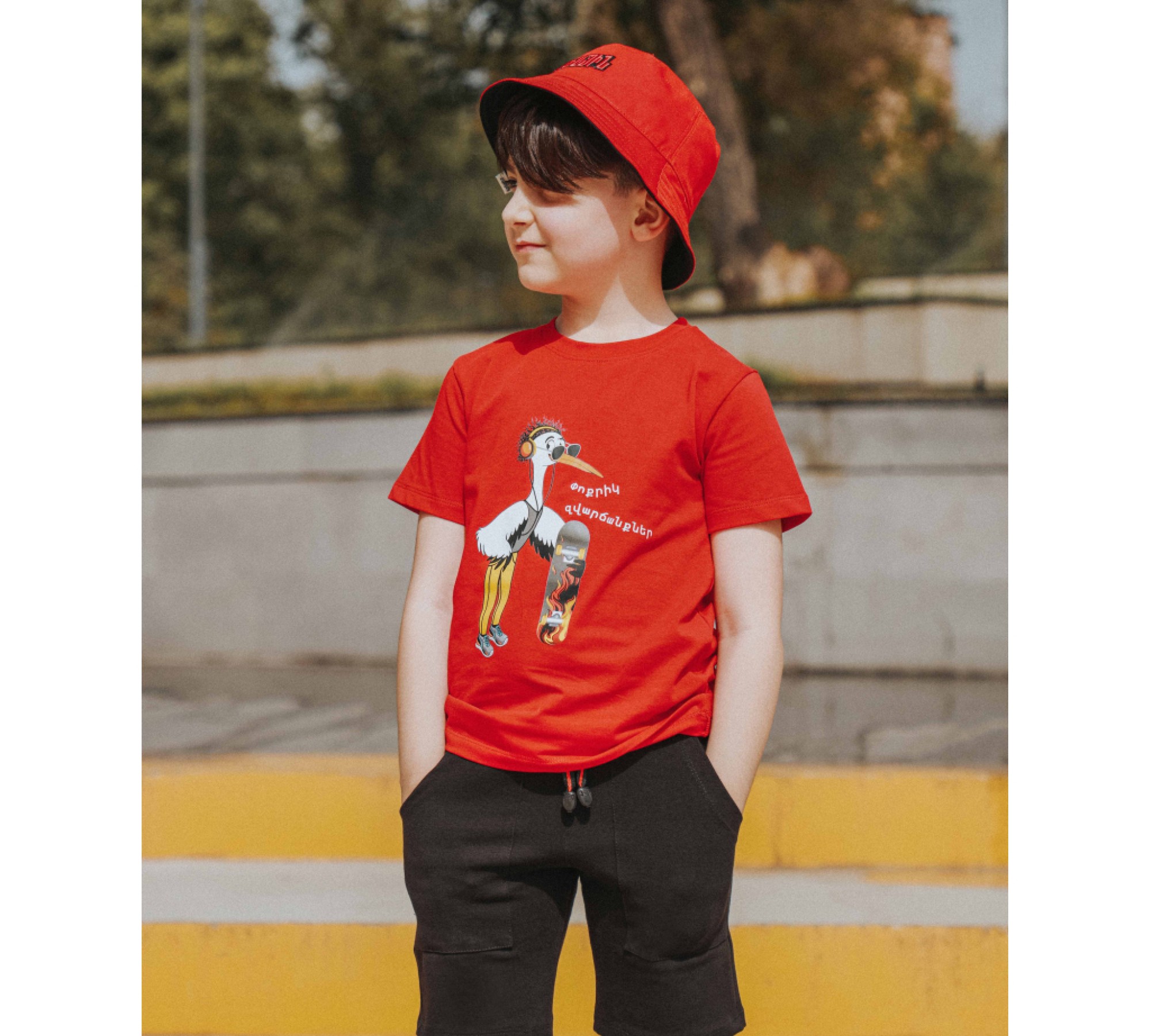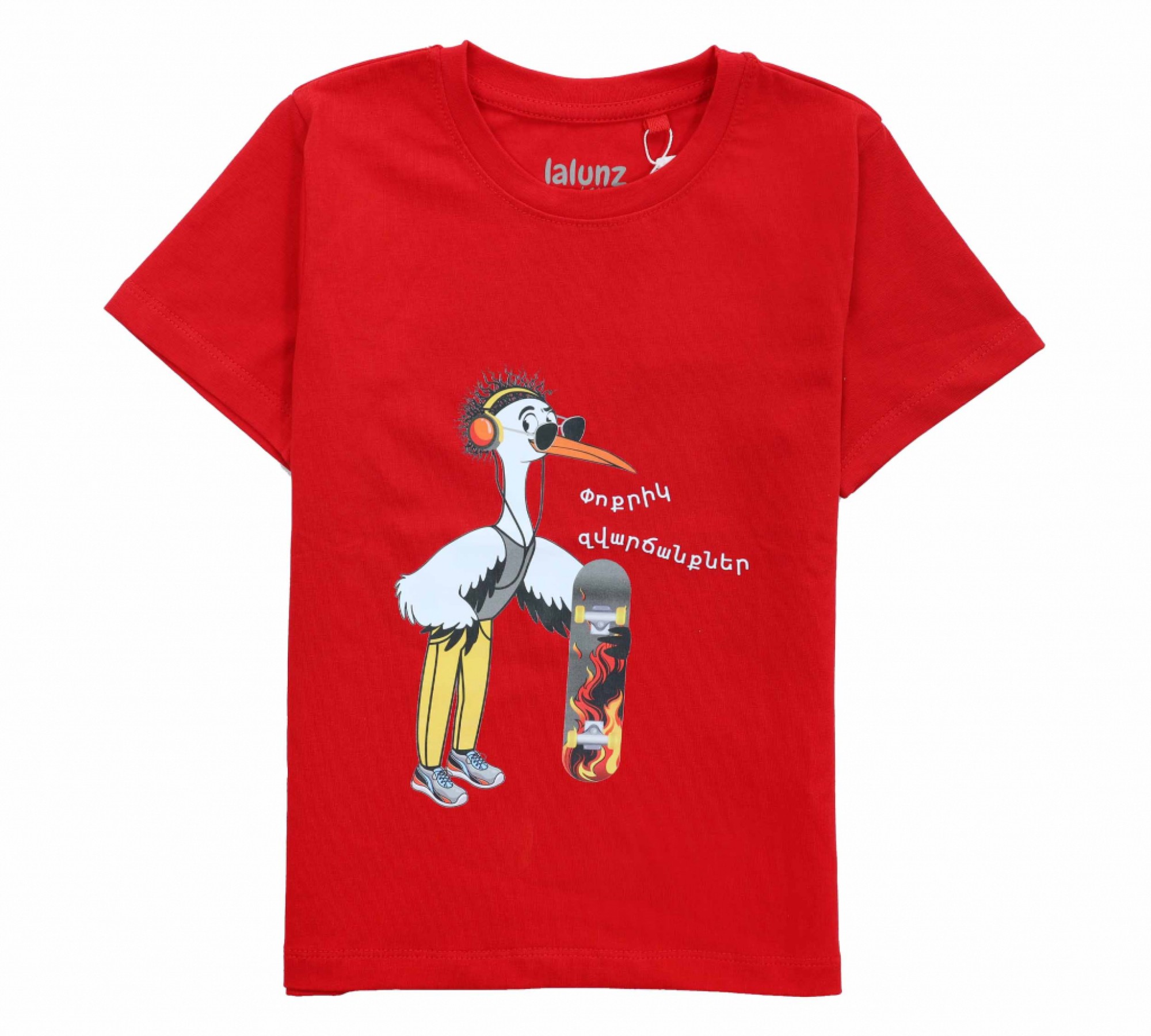 Стильная, удобная и качественная красная футболка с короткими рукавами с принтом аиста Франклина и надписью \`Маленькие приключения\` для мальчиков и девочек