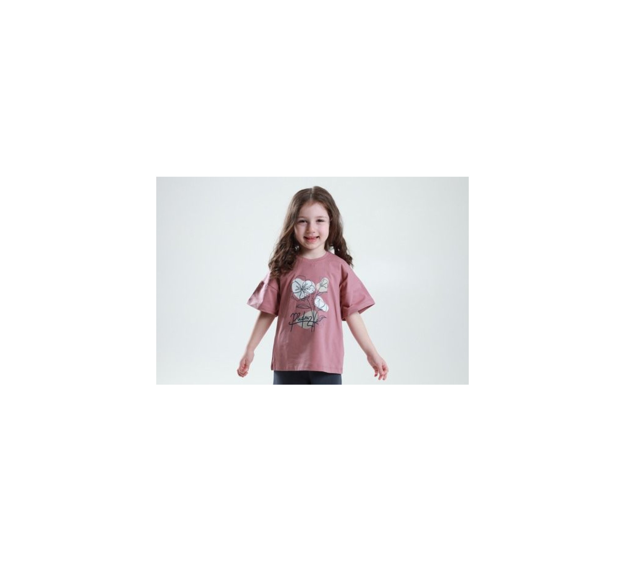 Стильная, удобная и качественная футболка с короткими рукавами темно-розового цвета с принтом цветочка и надписью \`Нежность\` для нежных девочек