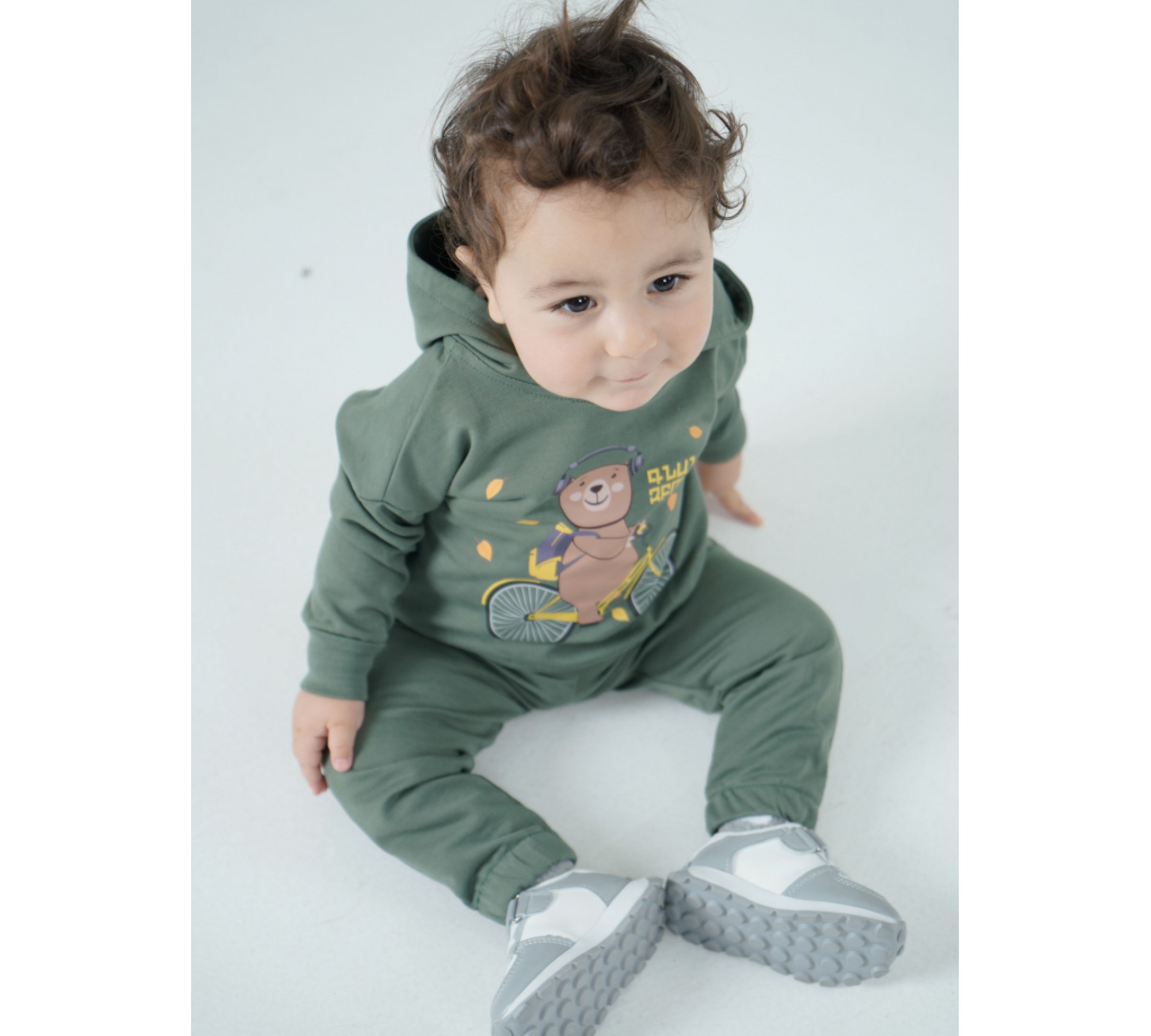 Детское худи цвета хаки `Пойдем гулять`