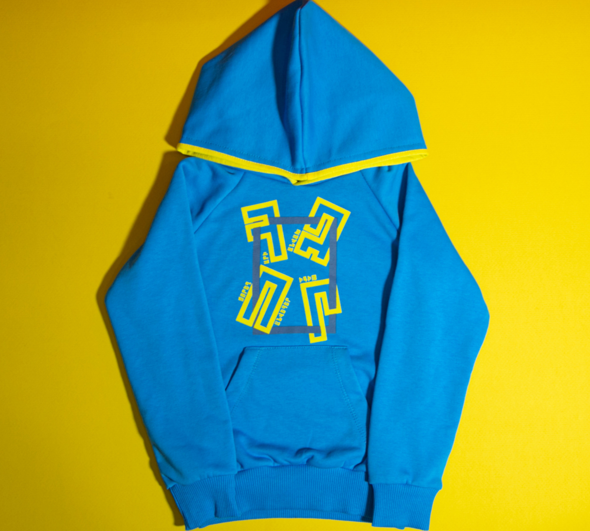 Качественные, стильные и удобные худи голубого цвета с надписью `Мощный` для мальчиков