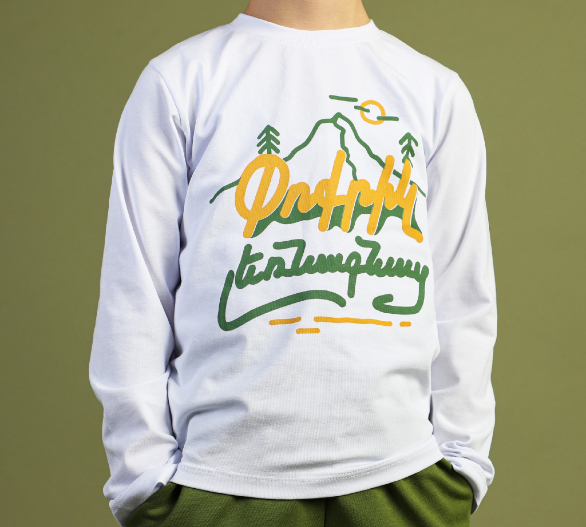 Качественная и удобная белая кофточка с длинными рукавами и принтом `Маленький альпинист` для мальчиков