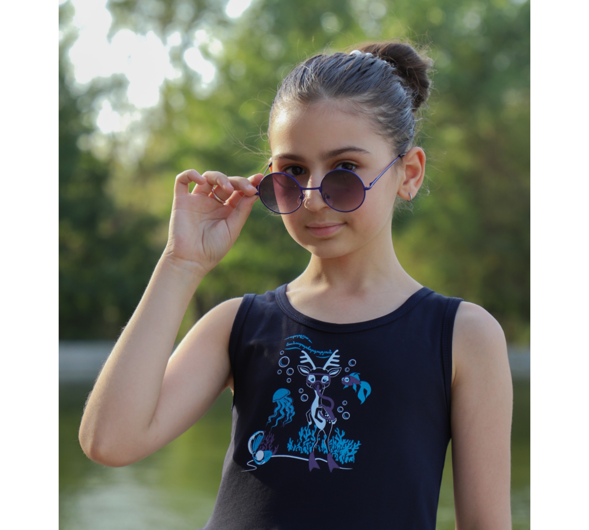 Stylish, comfortable and high-quality blue sleeveless dress with deer print Lalu `Underwater Journey` for girls