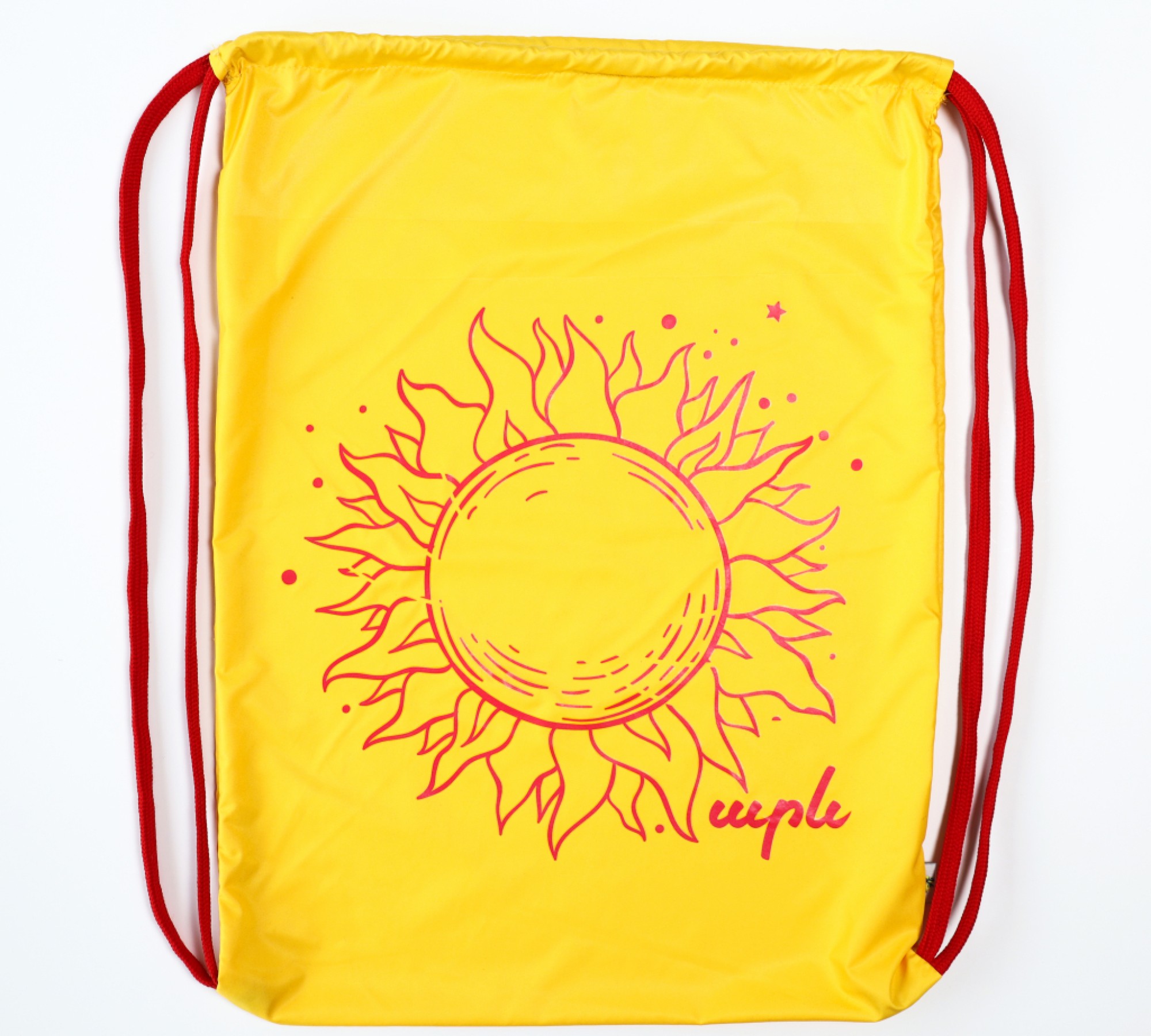 Stylish and high quality yellow sports backpack with sun print for sunny children35*45