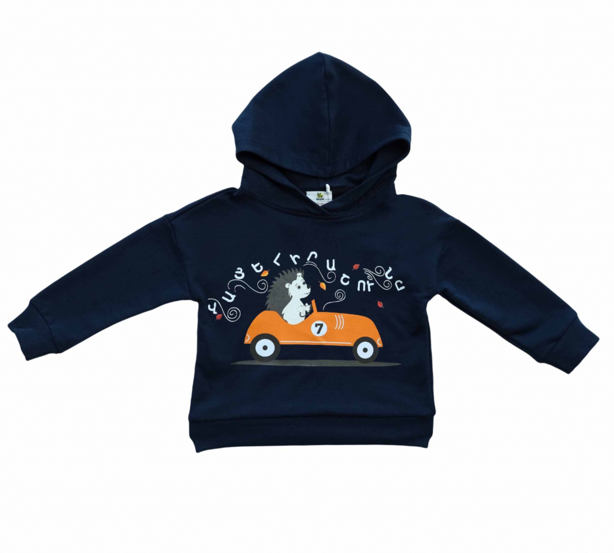 Stylish, quality and comfortable blue hoodie with Lele hedgehog \`Enjoy Autumn\` print for boys