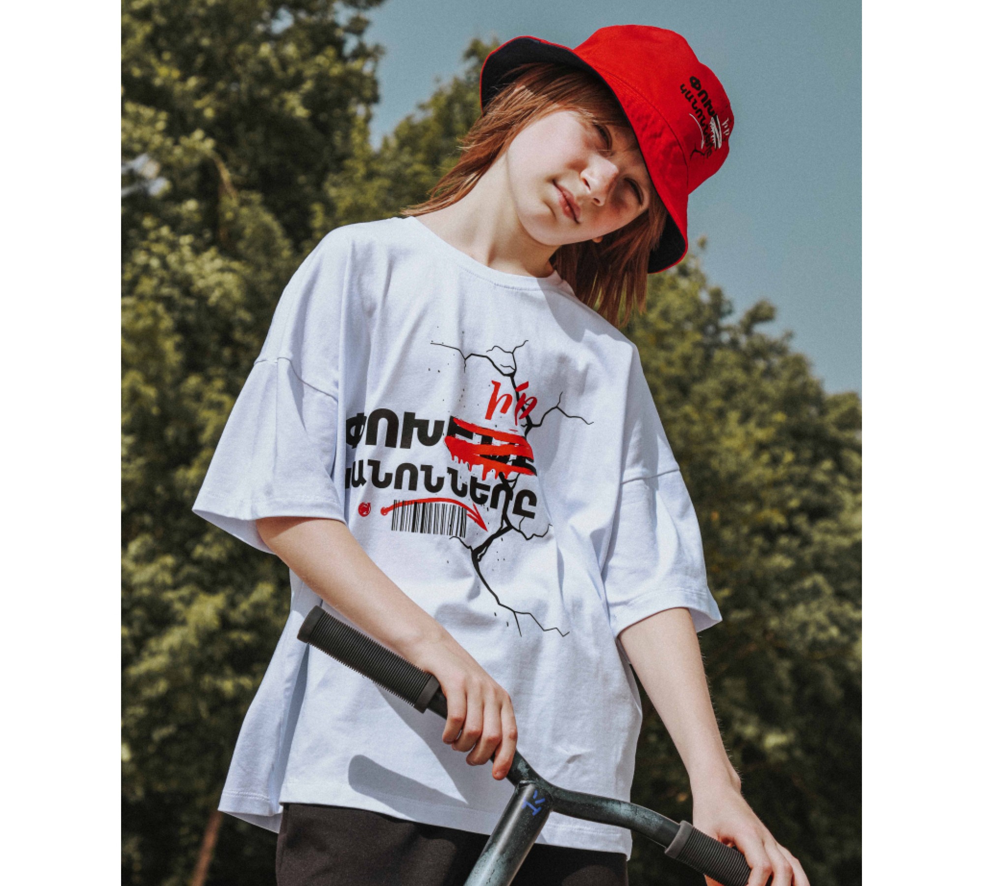 Stylish, comfortable and high-quality white oversize T-shirt with short sleeves with «Change the rules» lettering for boys and girls