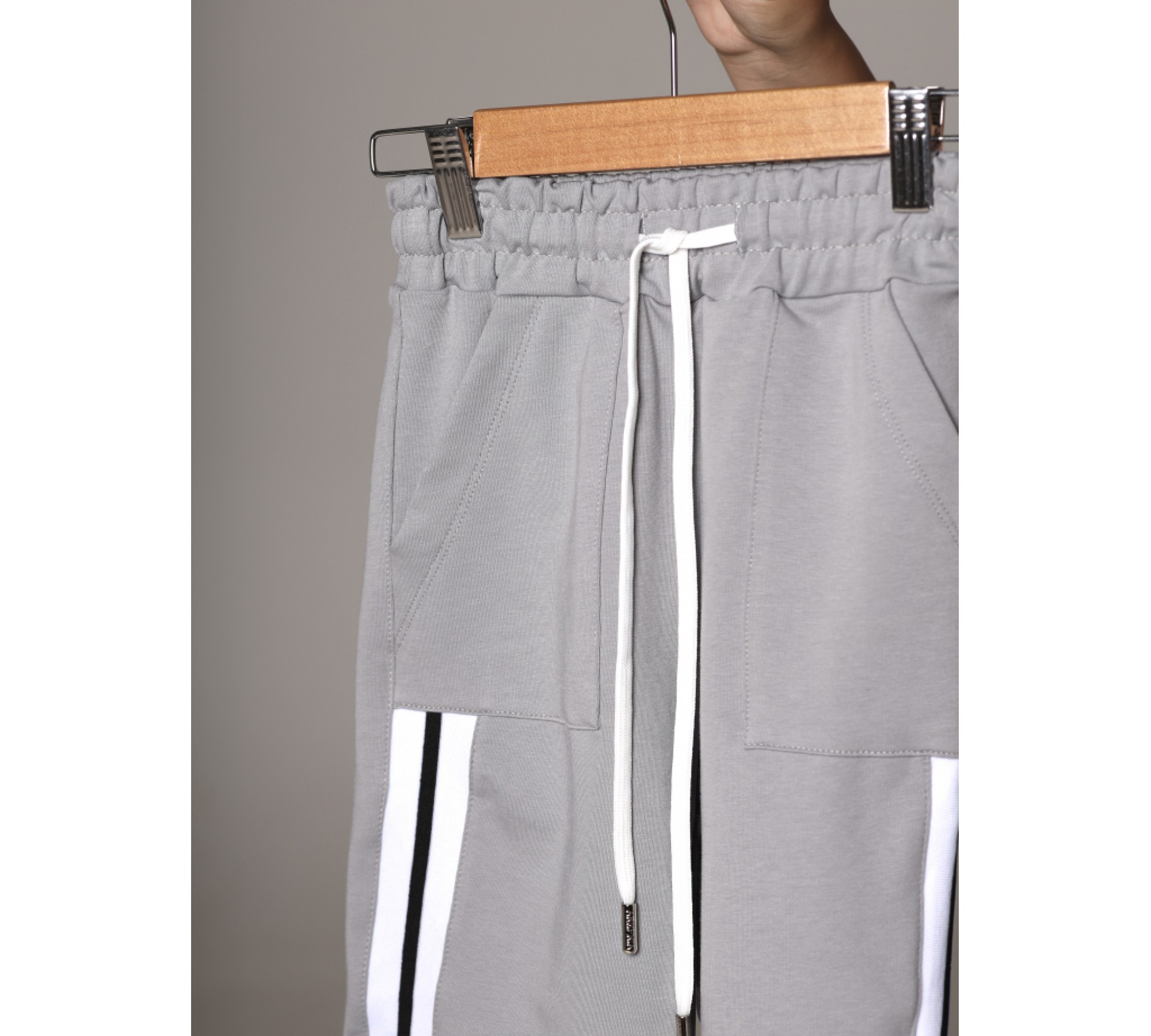 Gray trousers with black lampas