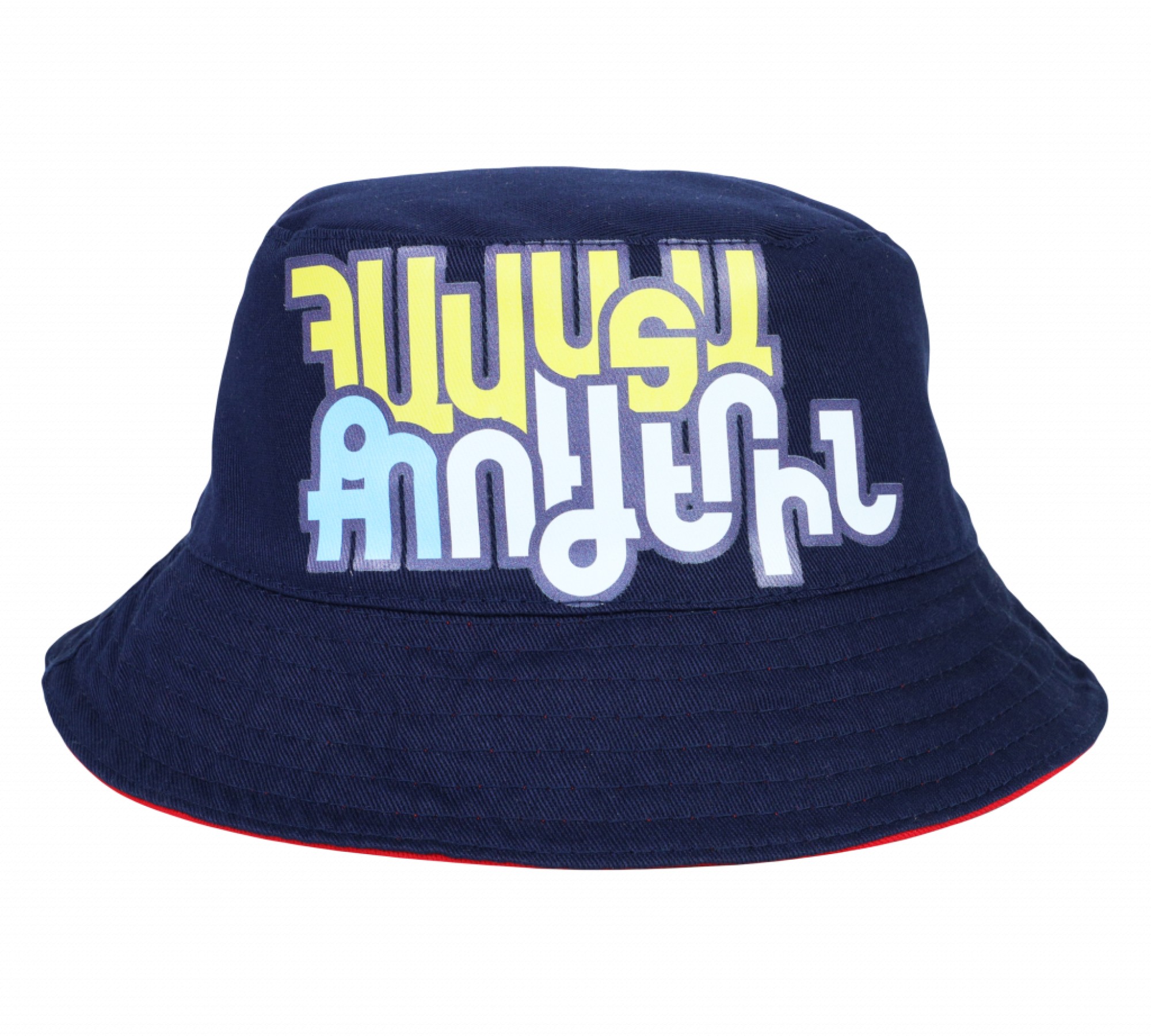 Stylish summer reversible panama with \`Believe in yourself\` on the blue side and \`Change the Rules\` on the red side