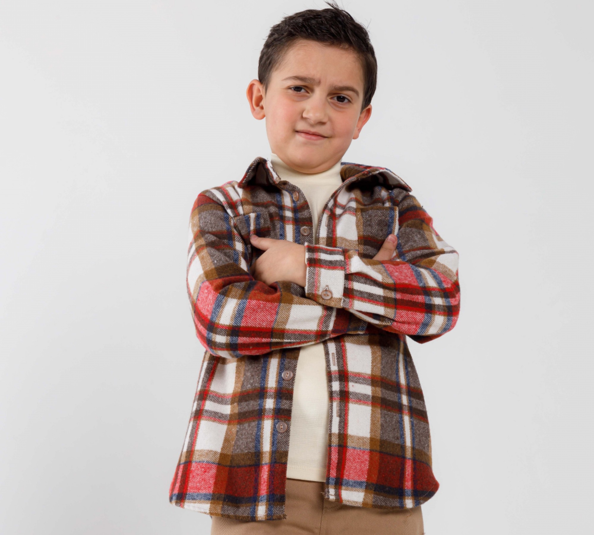 This red-white-brown plaid model can be worn as a shirt or as a light outerwear in cool weather. By combining it with jeans or sports pants, you will get a stylish image.