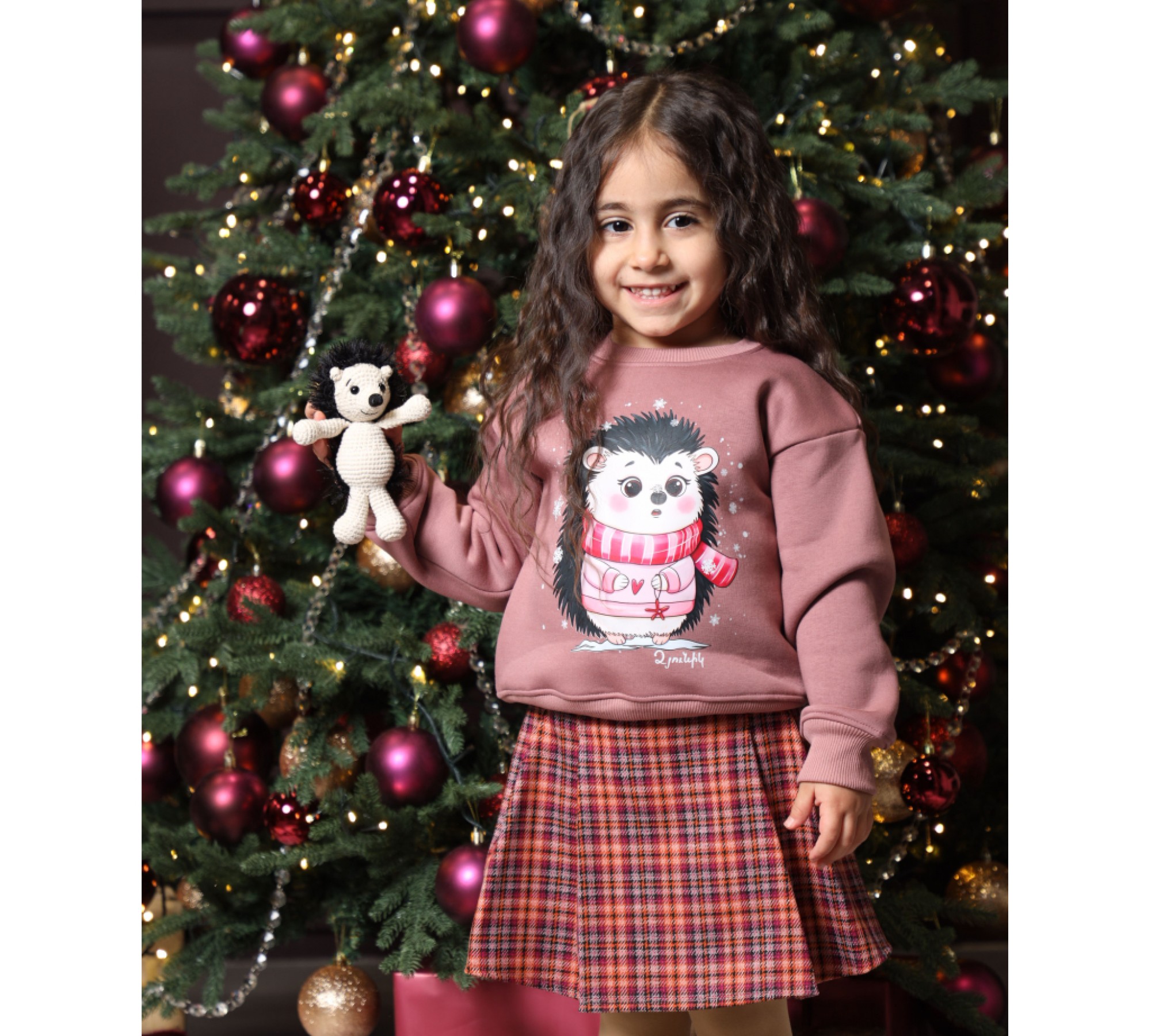 A warm and cozy pink sweater with a cheerful hedgehog print. The perfect choice for winter days, combining comfort and a stylish look.