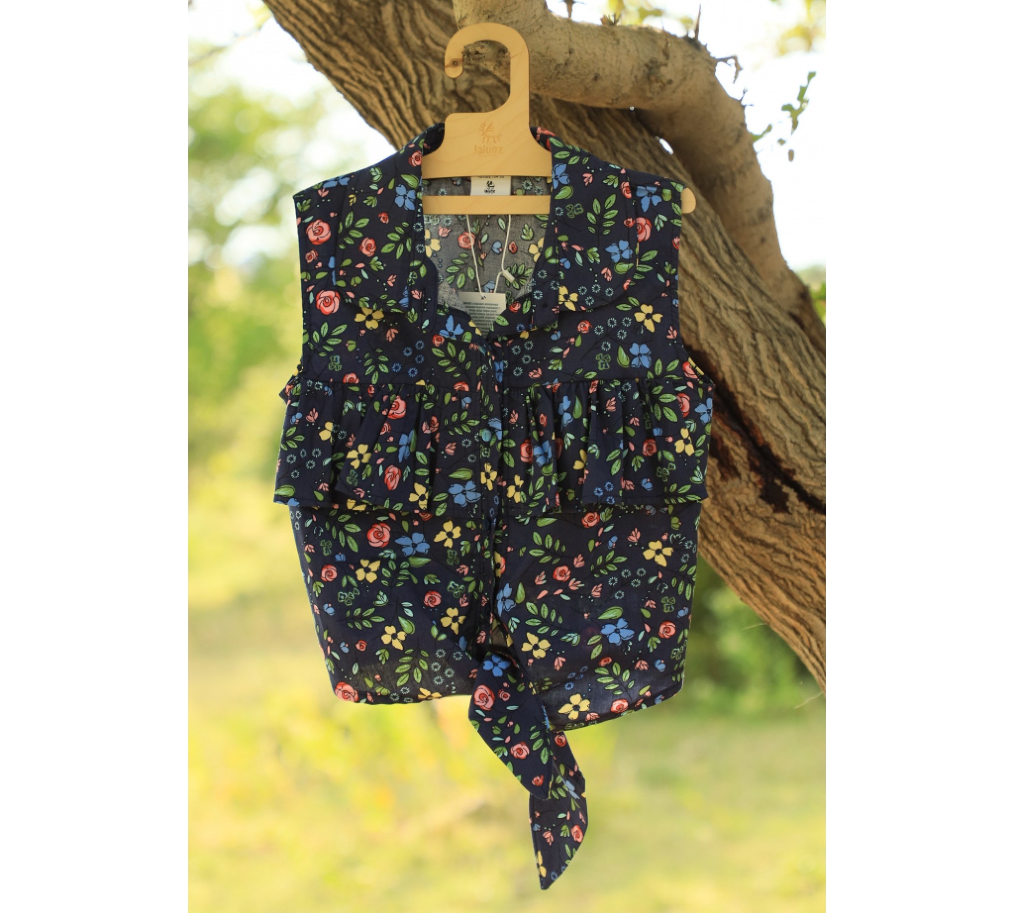 Նորաոճ և որակյալ ծաղկավոր կապույտ վերնաշապիկ թիթիզ աղջիկների համար