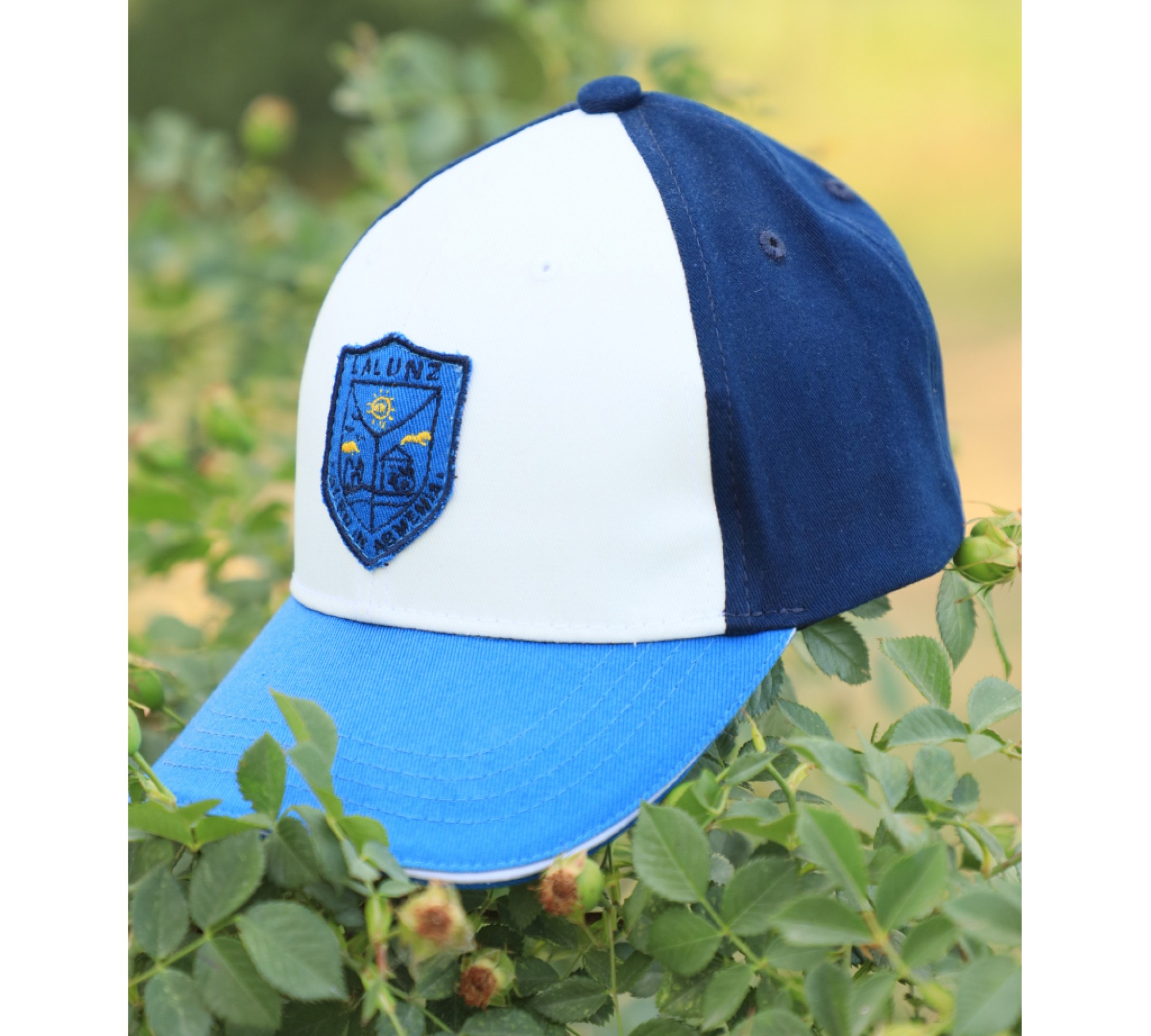Կաթնագույնի և կապույտի համարդրությամբ գեղեցիկ կեպի, փոքրիկ զինանշանով։ Գլխարկը հարմար է կրել ինչպես բակային խղերի ժամանակ, այնպես էլ ամառային զբոսանքների ժամանակ