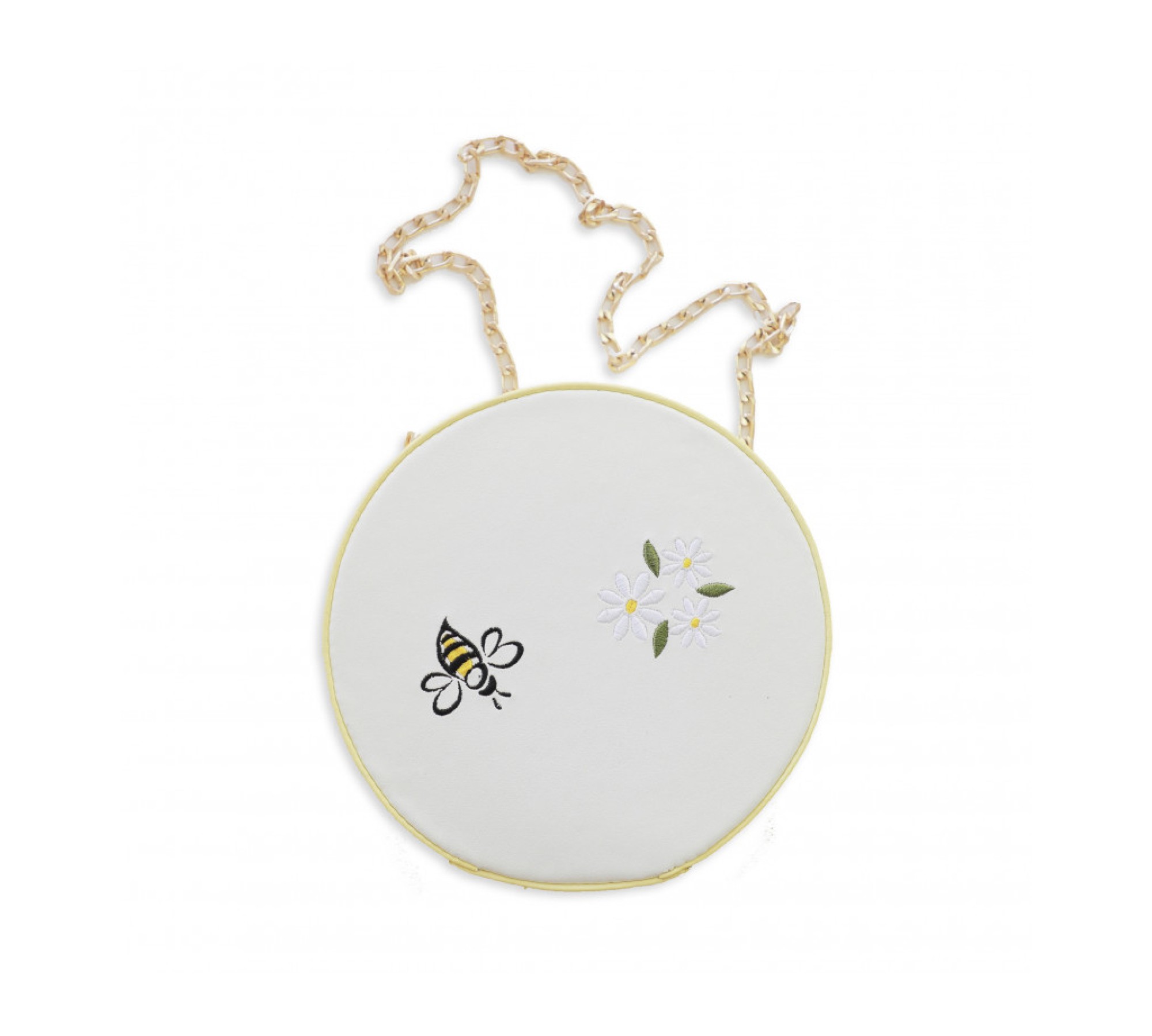 Ոճային, բարձրորակ, հարմարավետ և տարողունակ կլոր սպիտակ պայուսակ մեղուի պրինտով աղջիկ երեխաների համար