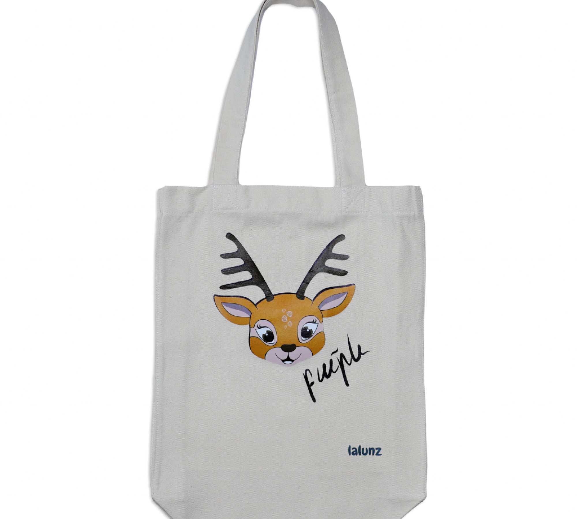 Экологически чистые сумки с 3 разными принтами: с принтом солнца и надписью солнце, с принтом ёжика Лала и надписью любящий, с принтом оленёнка Лалу и надписью привет