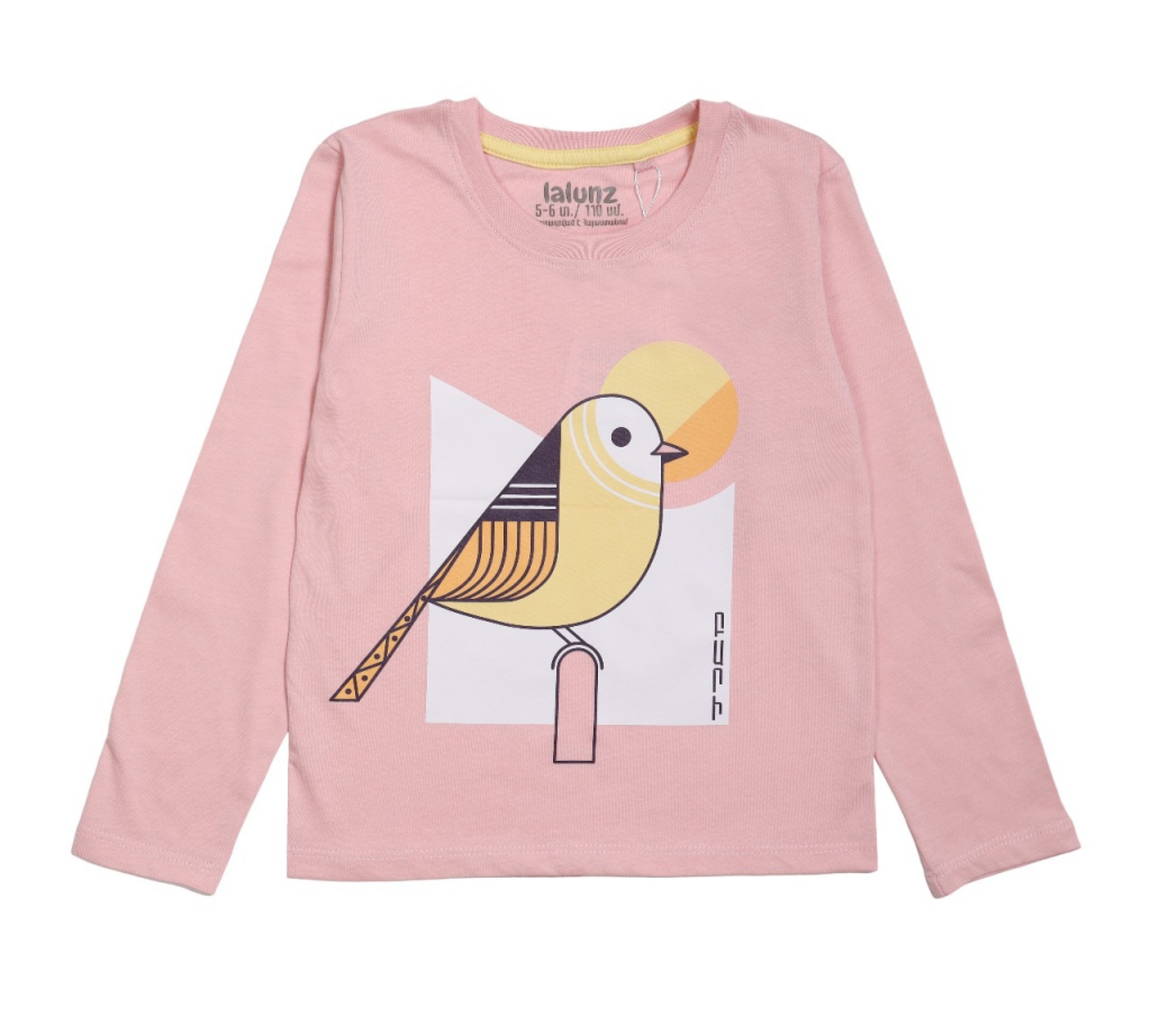 Стильная, качественная и комфортная розовая футболка с длинными рукавами с принтом птички Аршалуйсик для самых добрых девочек
