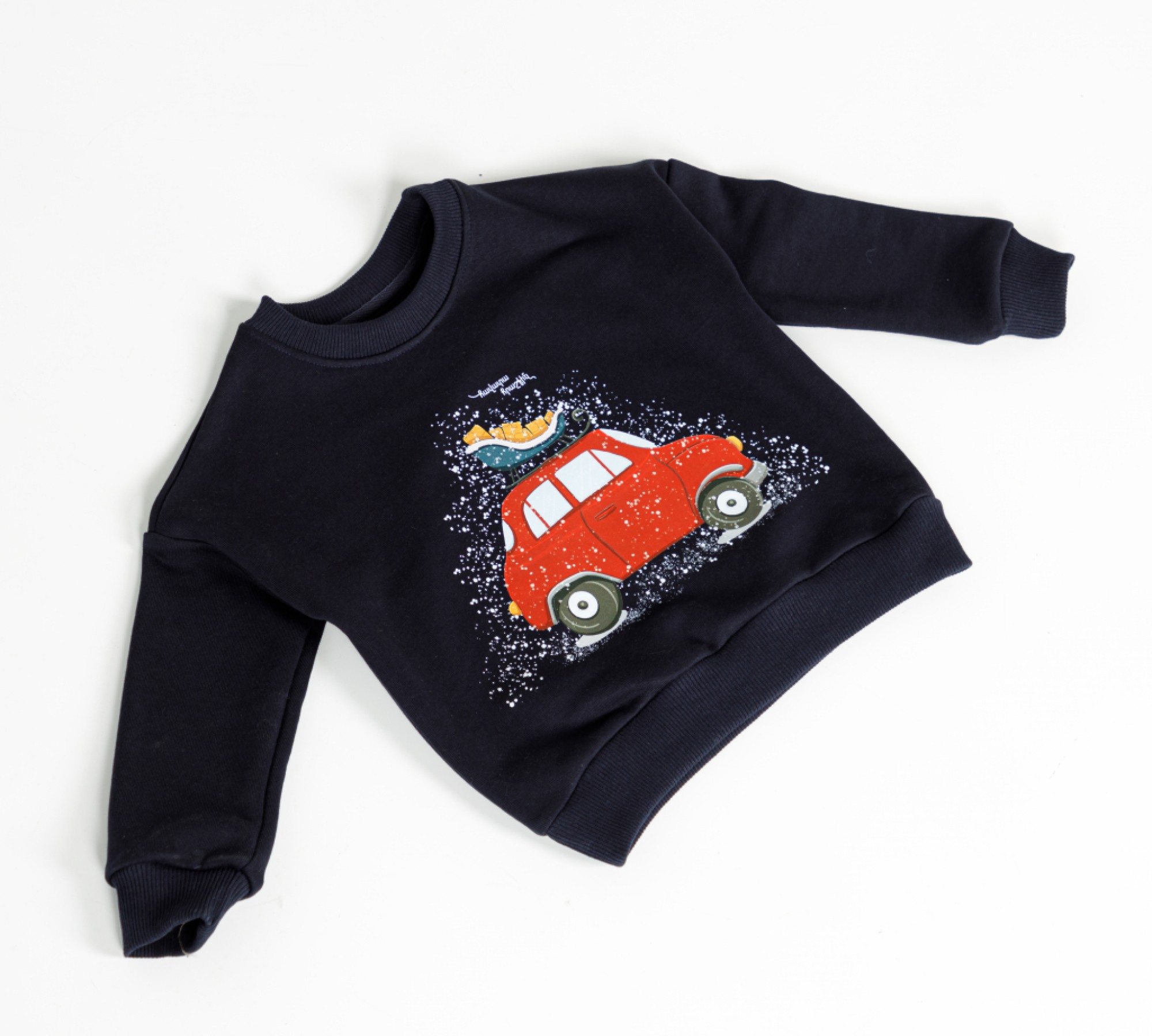 Стильный, удобный и качественный тёмно-синий свитшот с начёсом с надписью «Верь в чудеса» для маленьких мальчиков