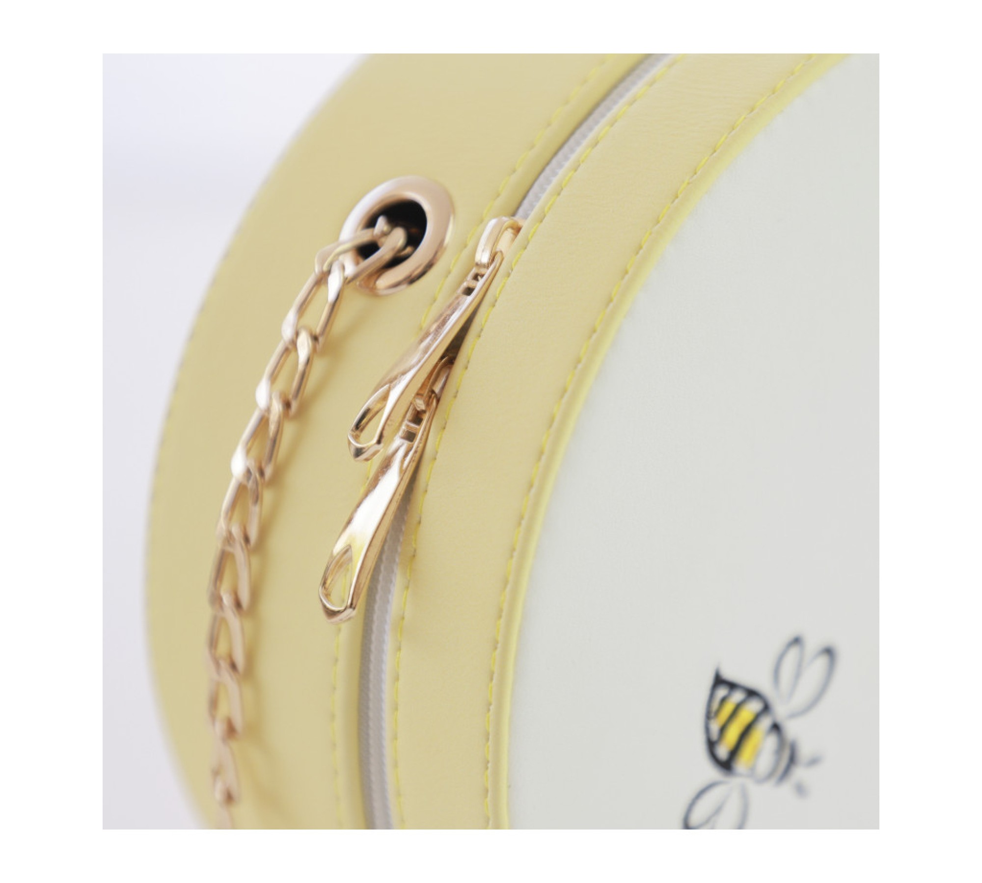 Стильная, качественная, удобная и вместительная круглая сумка белого цвета с принтом пчелы для девочек