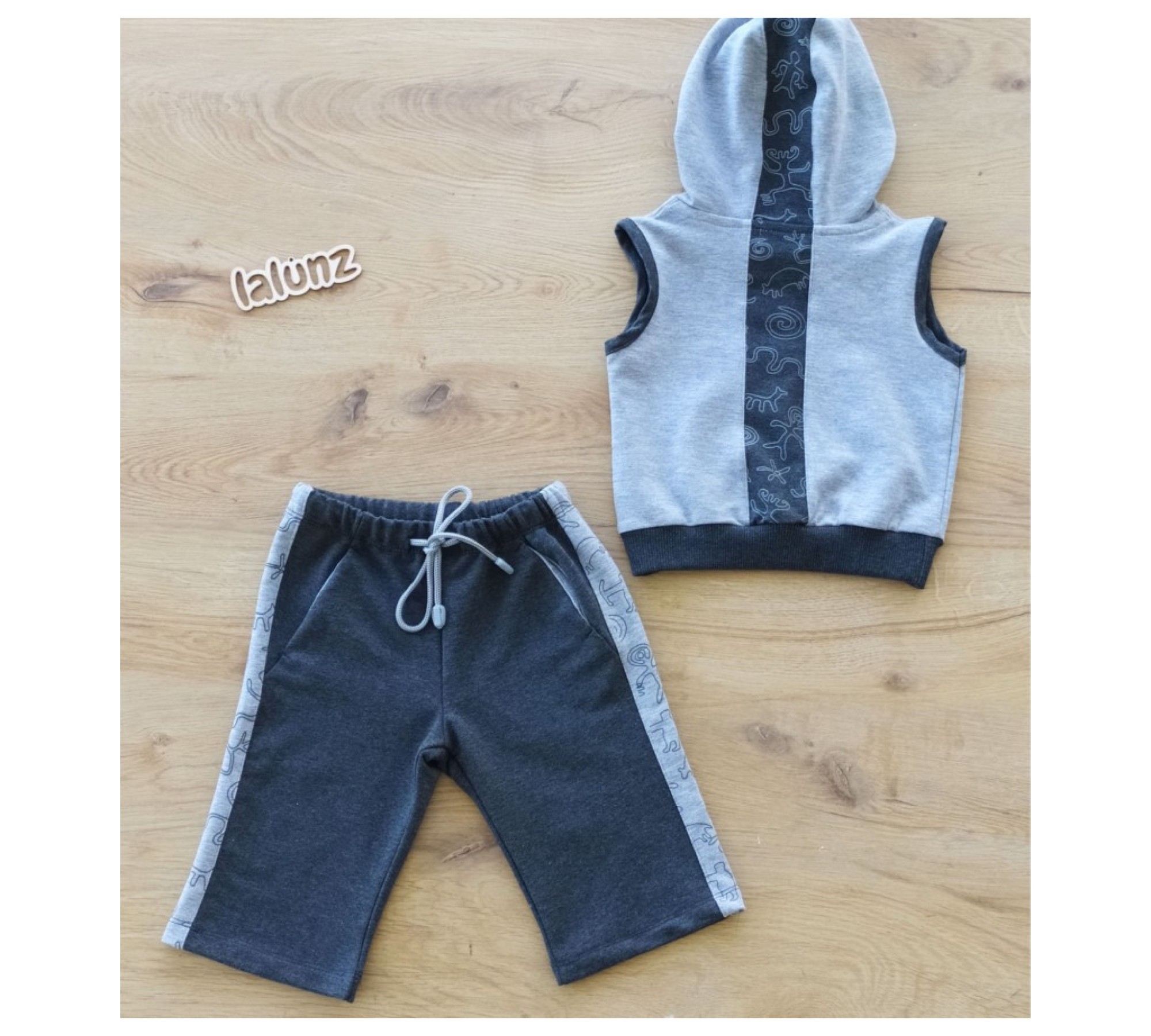 Шорты темно-серые с отпринтованными светло-серыми полосками