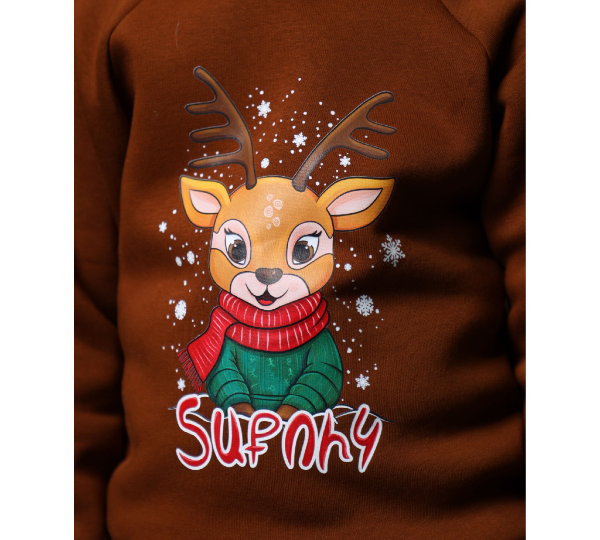 Красивая, стильная и удобная зимняя толстовка с принтом оленя Лалу. Это замечательный способ сделать зимних персонажей ребенка более яркими и запоминающимися.