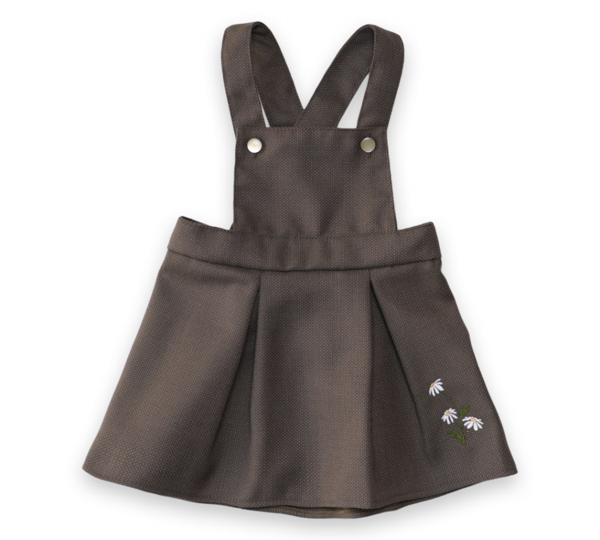 Стильный, удобный, качественный коричневый сарафан с вышивкой ромашки для маленьких модниц