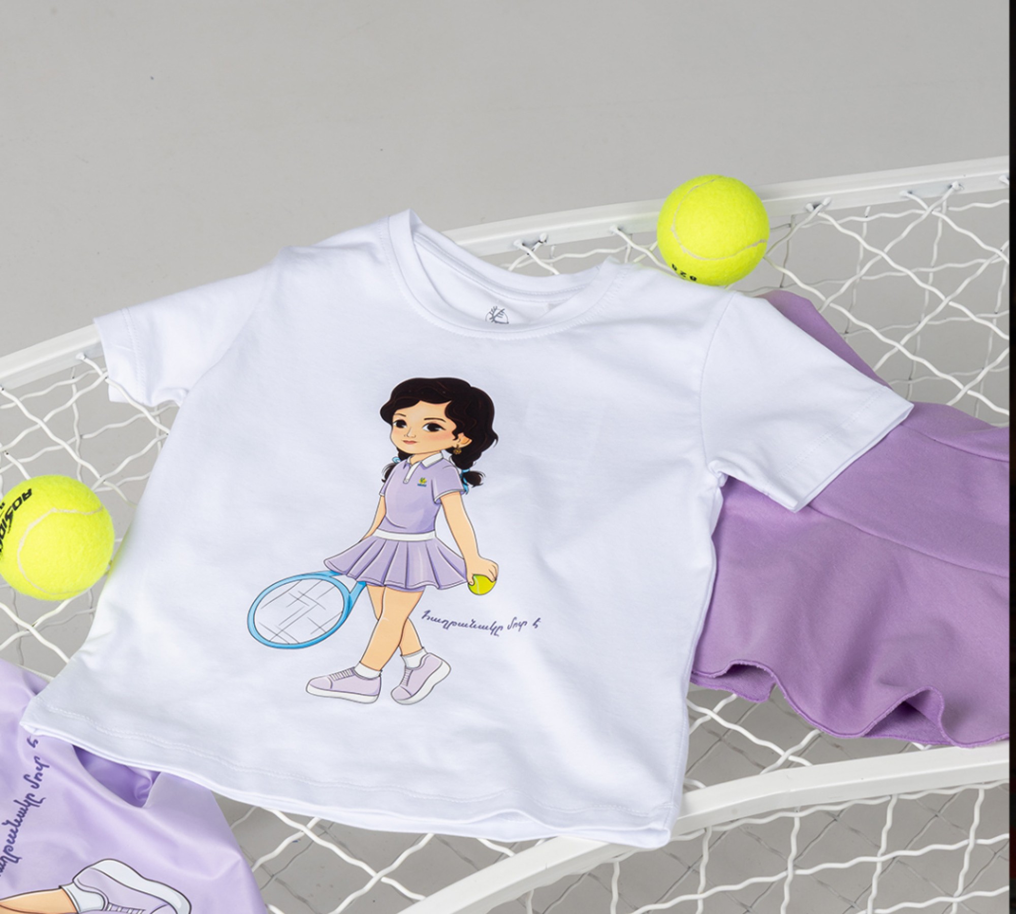 Стильная футболка с изображением армянки, играющей в теннис. Изготовлена из высококачественных материалов — отличный выбор для спортивных девушек.