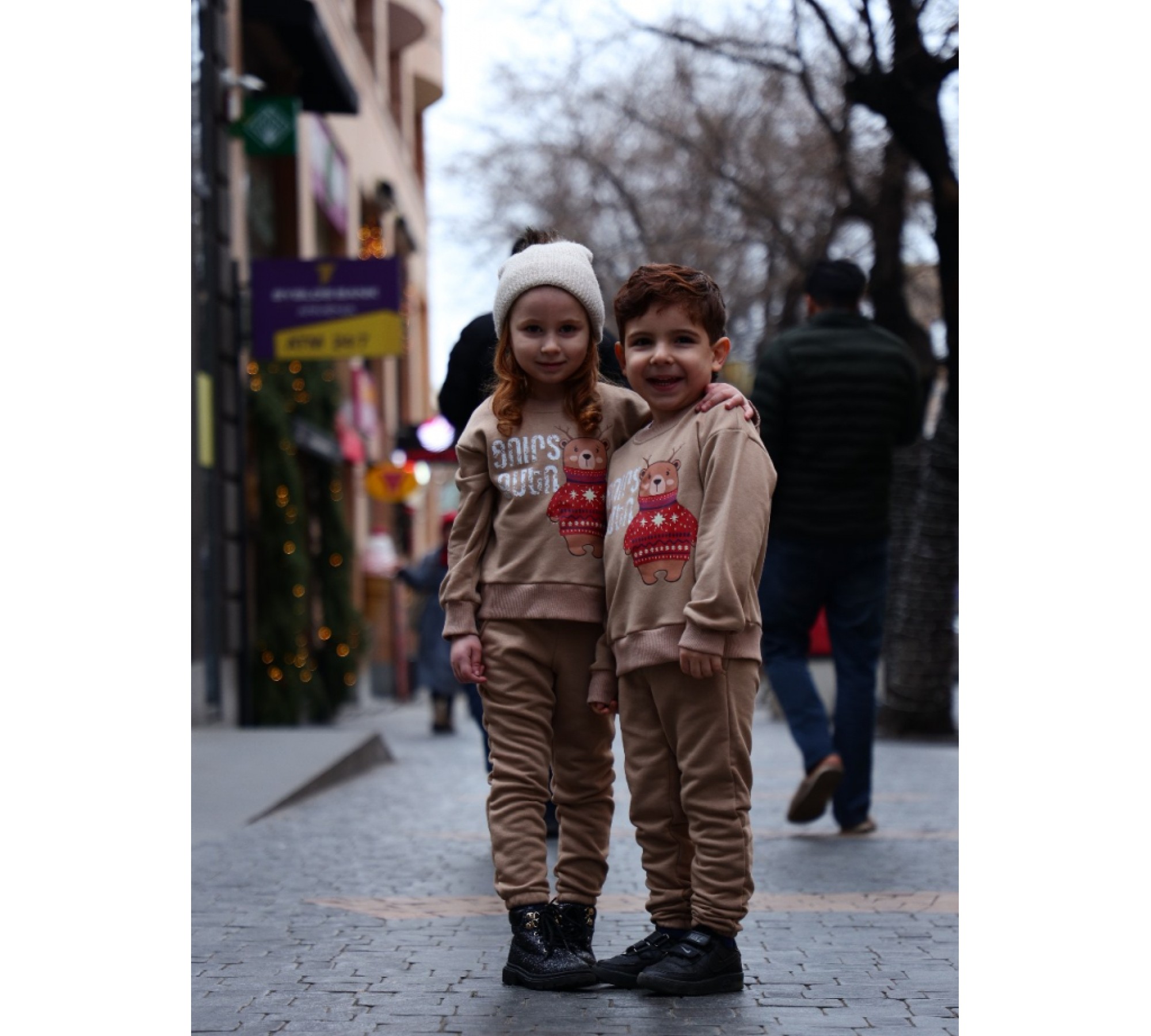 Стильный, удобный и качественный светло-коричневый свитшот с принтом медвежонка Гоша для мальчиков